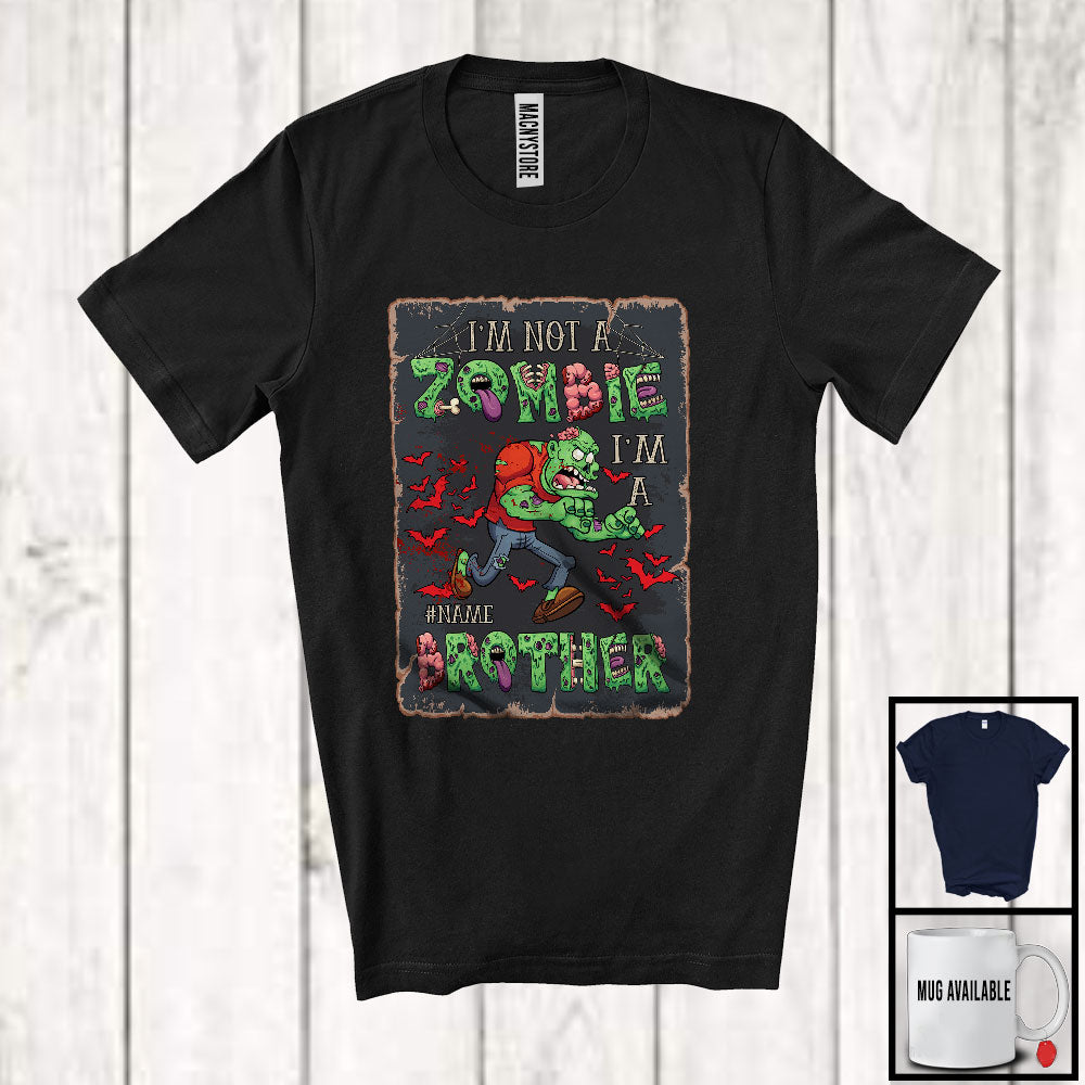 Personalized Custom Name I'm Not A Zombie I'm A Brother; Scary Halloween Family Group T-Shirt