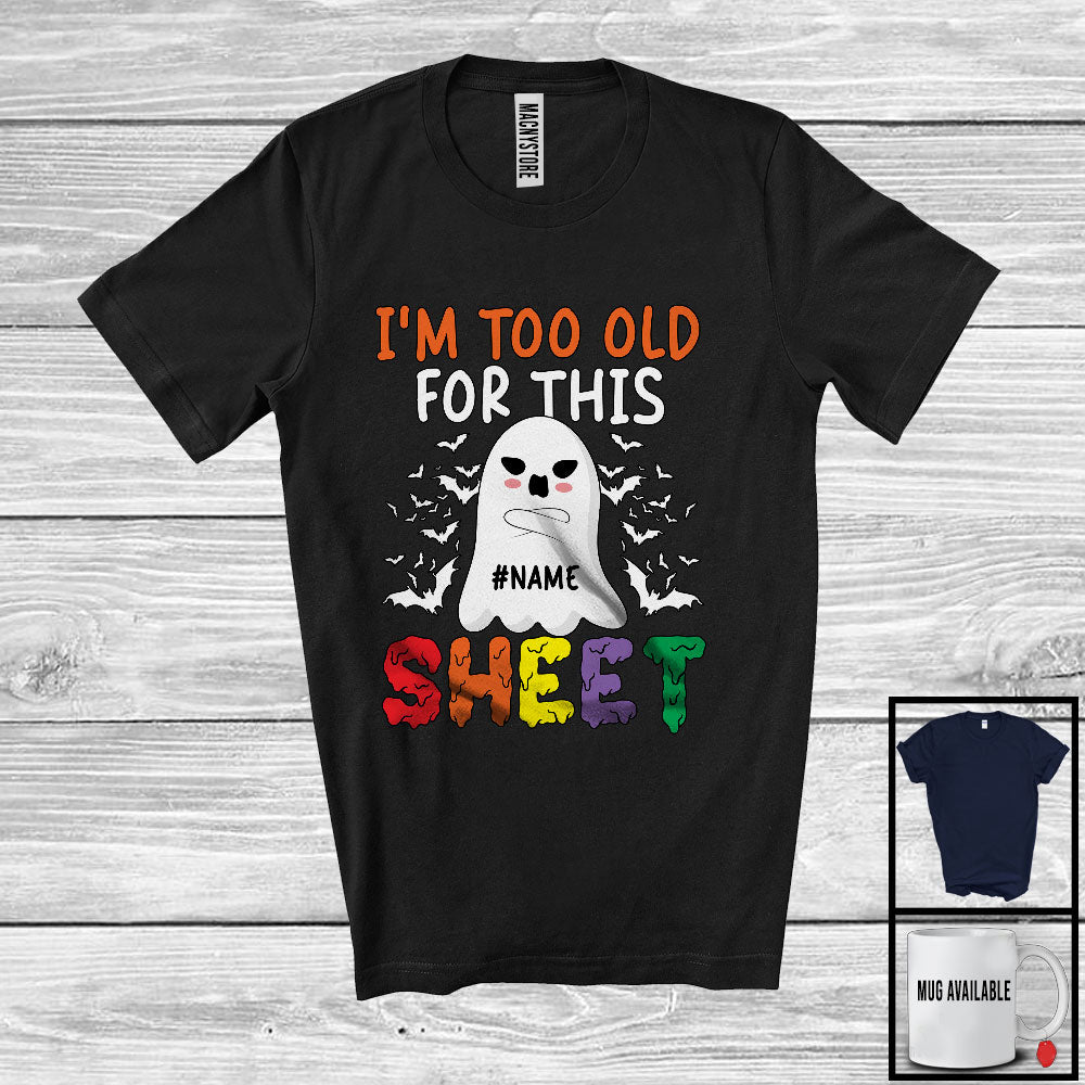 Personalized Custom Name I'm Too Old For This Sheet; Sarcastic Halloween Boo Ghost; Family T-Shirt