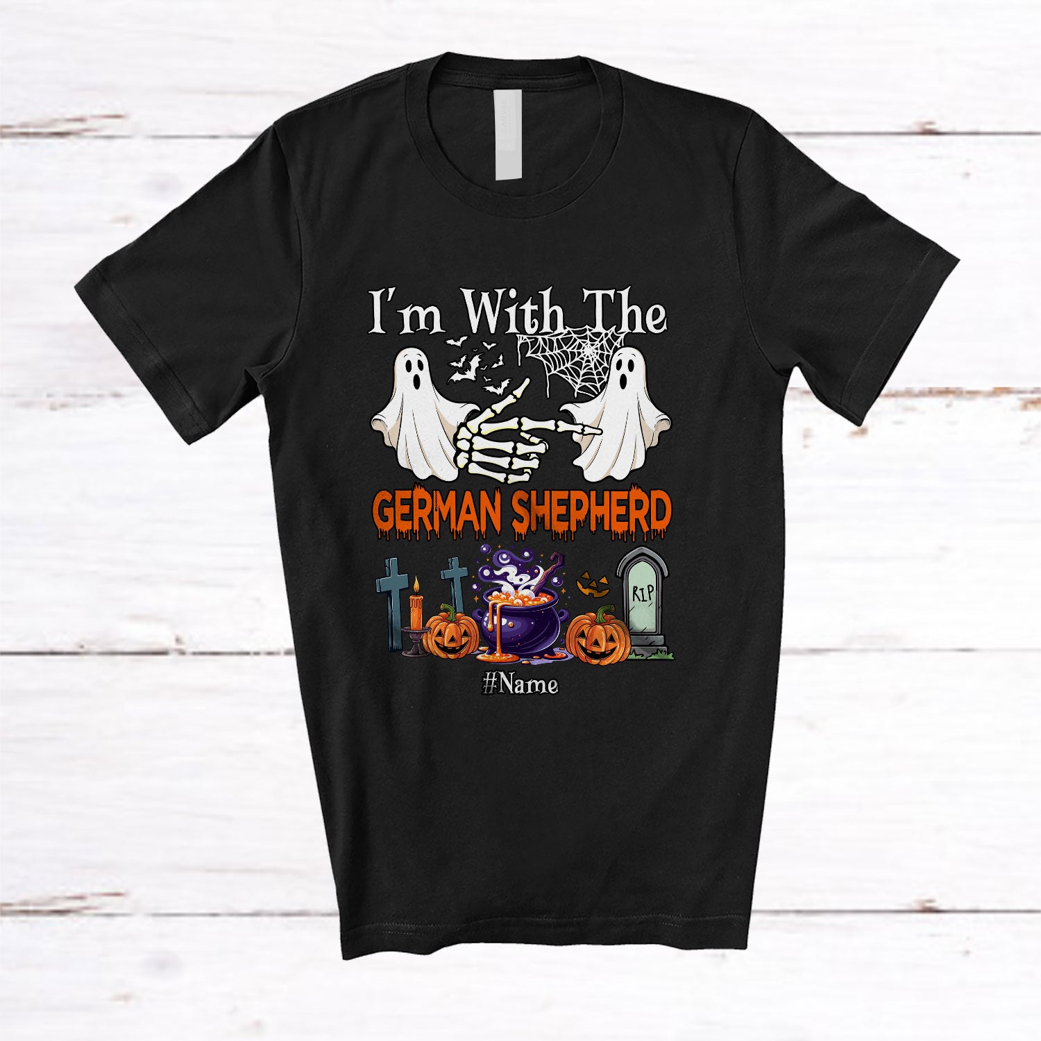 Personalized Custom Name I'm With The German Shepherd; Amazing Halloween Boo Ghost; Couple T-Shirt. This cotton t-shirt is a durable staple product with a classic fit. One of the most popular items, it has a relaxed style made for everyday and casual wear.