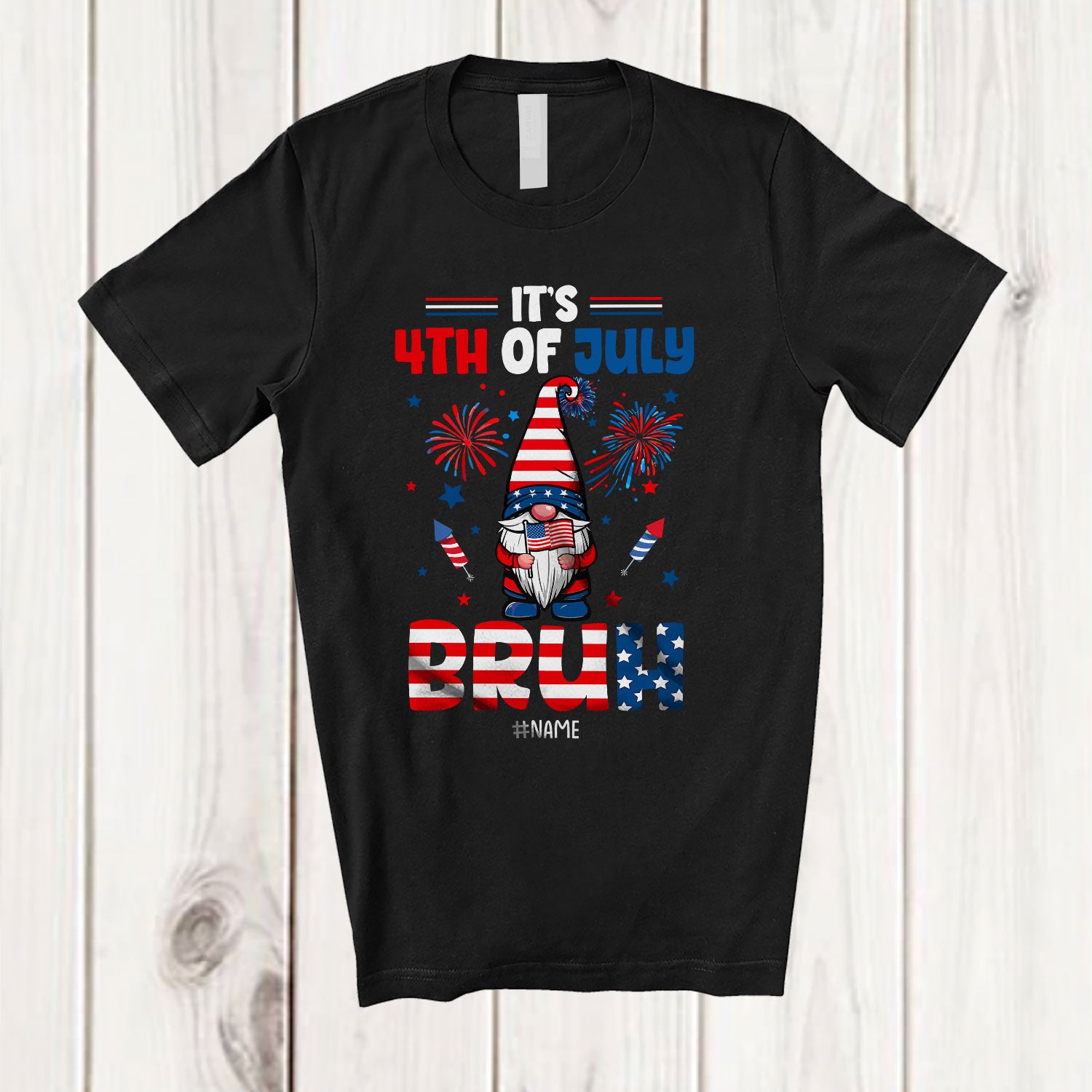 Personalized Custom Name It's 4th Of July Bruh; Joyful Gnome Gnomies American Flag; Patriotic T-Shirt