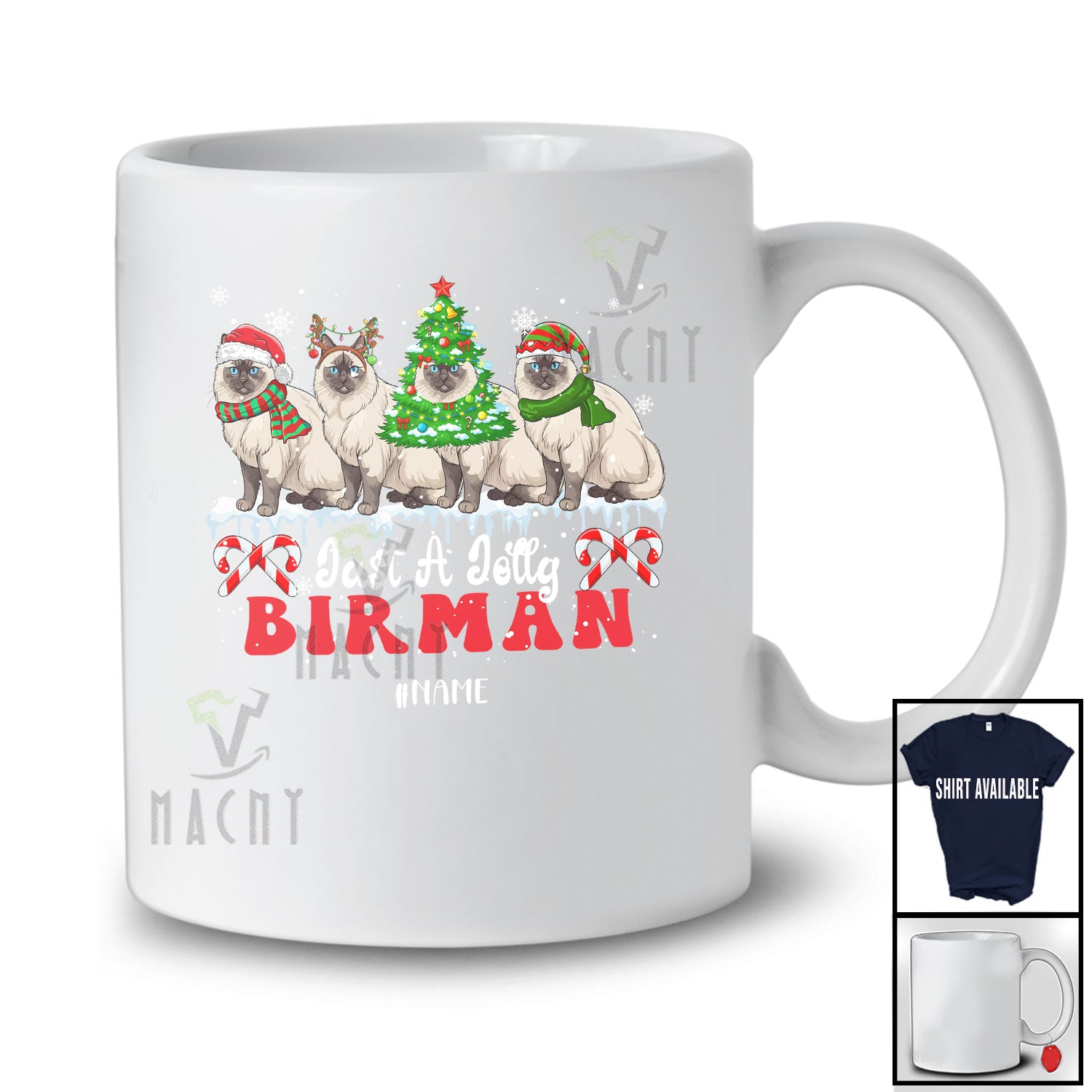 This Personalized Custom Name Just A Jolly Birman; Adorable Christmas Tree Santa Elf Animal T-Shirt is great idea gift for your family, friends in this birthday, christmas, mother's day, father's day, patrick's day or any holiday.
