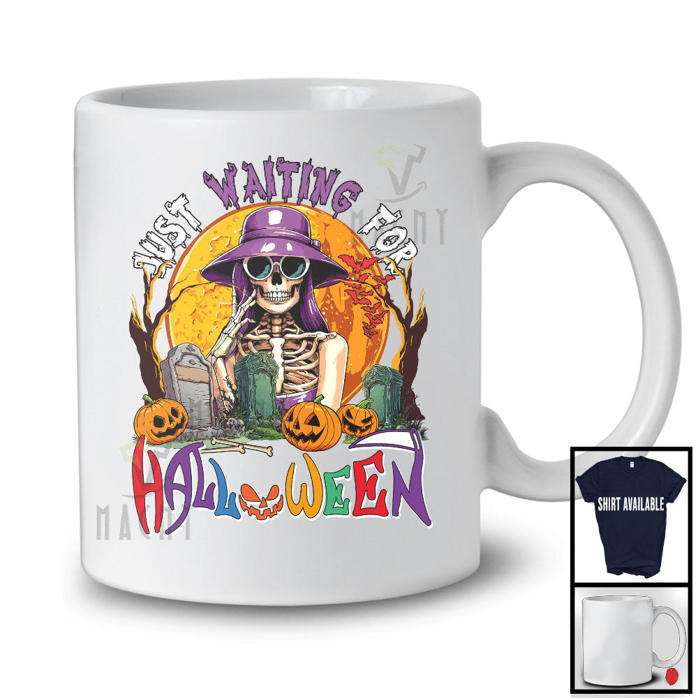 new MacnyStore - Personalized Custom Name Just Waiting For Halloween; Scary Moon Skeleton Witch; Family T-Shirt – Macnystore