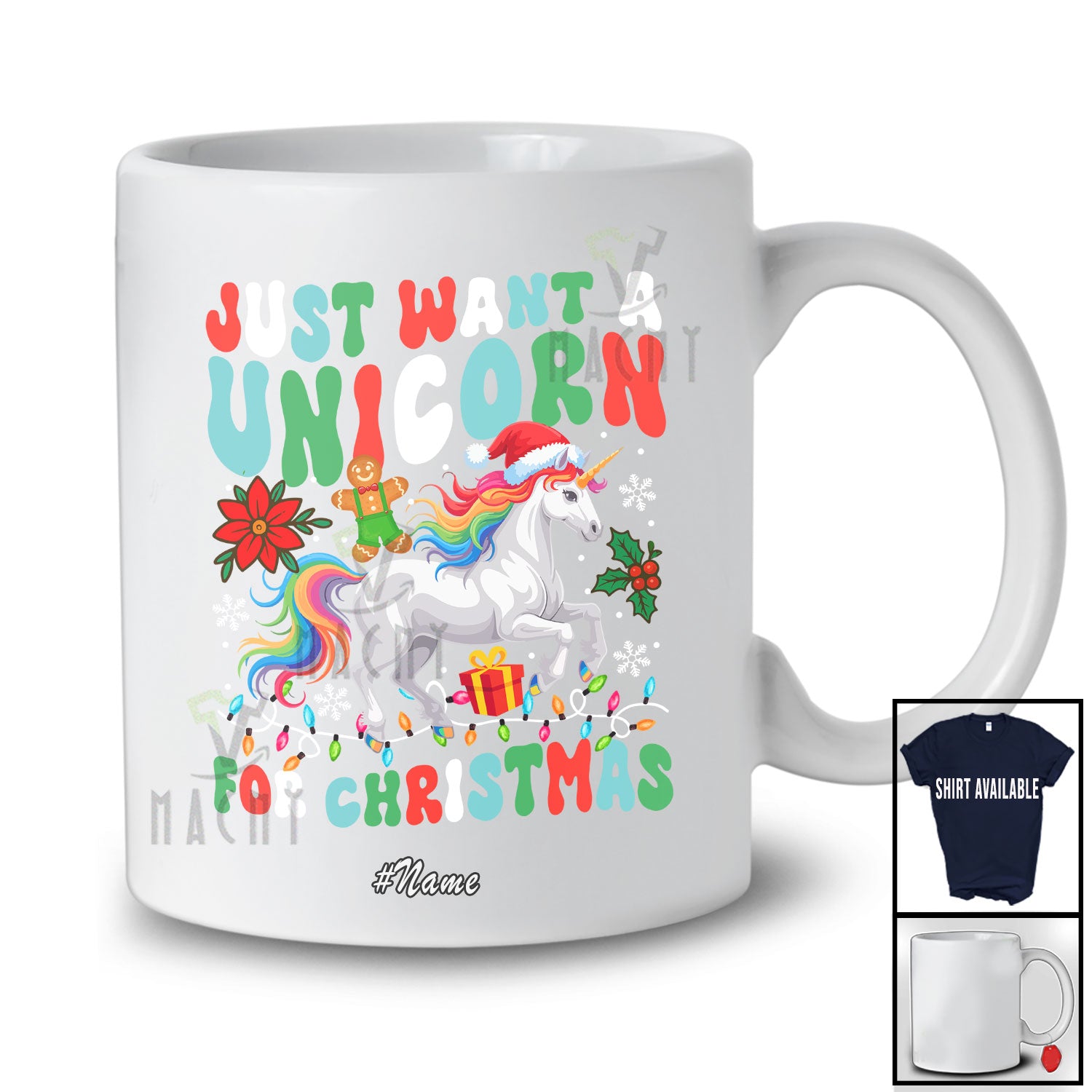 This Personalized Custom Name Just Want A Unicorn For Christmas; Lovely Santa Unicorn Magical T-Shirt is great idea gift for your family, friends in this birthday, christmas, mother's day, father's day, patrick's day or any holiday.