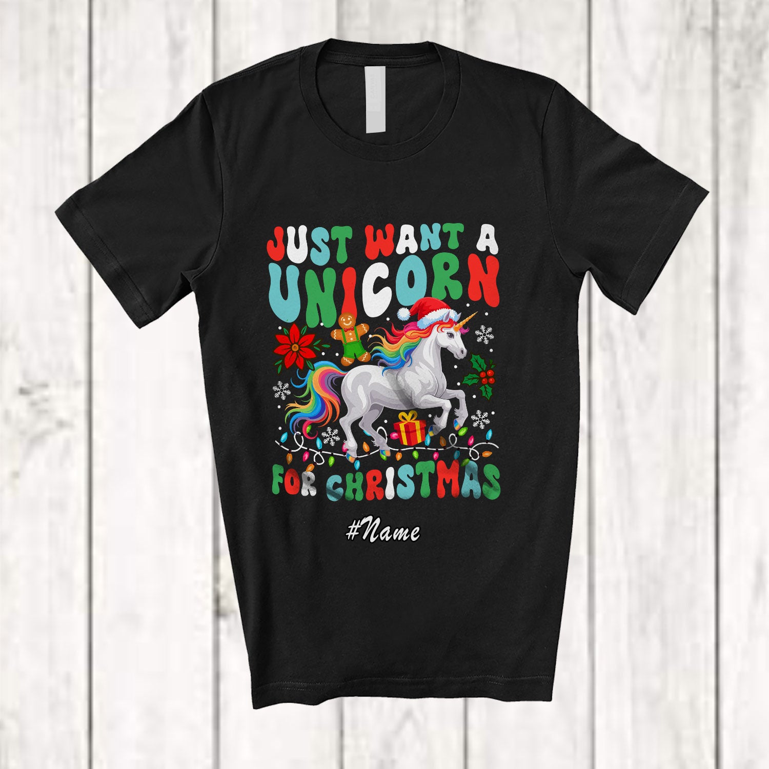 Personalized Custom Name Just Want A Unicorn For Christmas; Lovely Santa Unicorn Magical T-Shirt