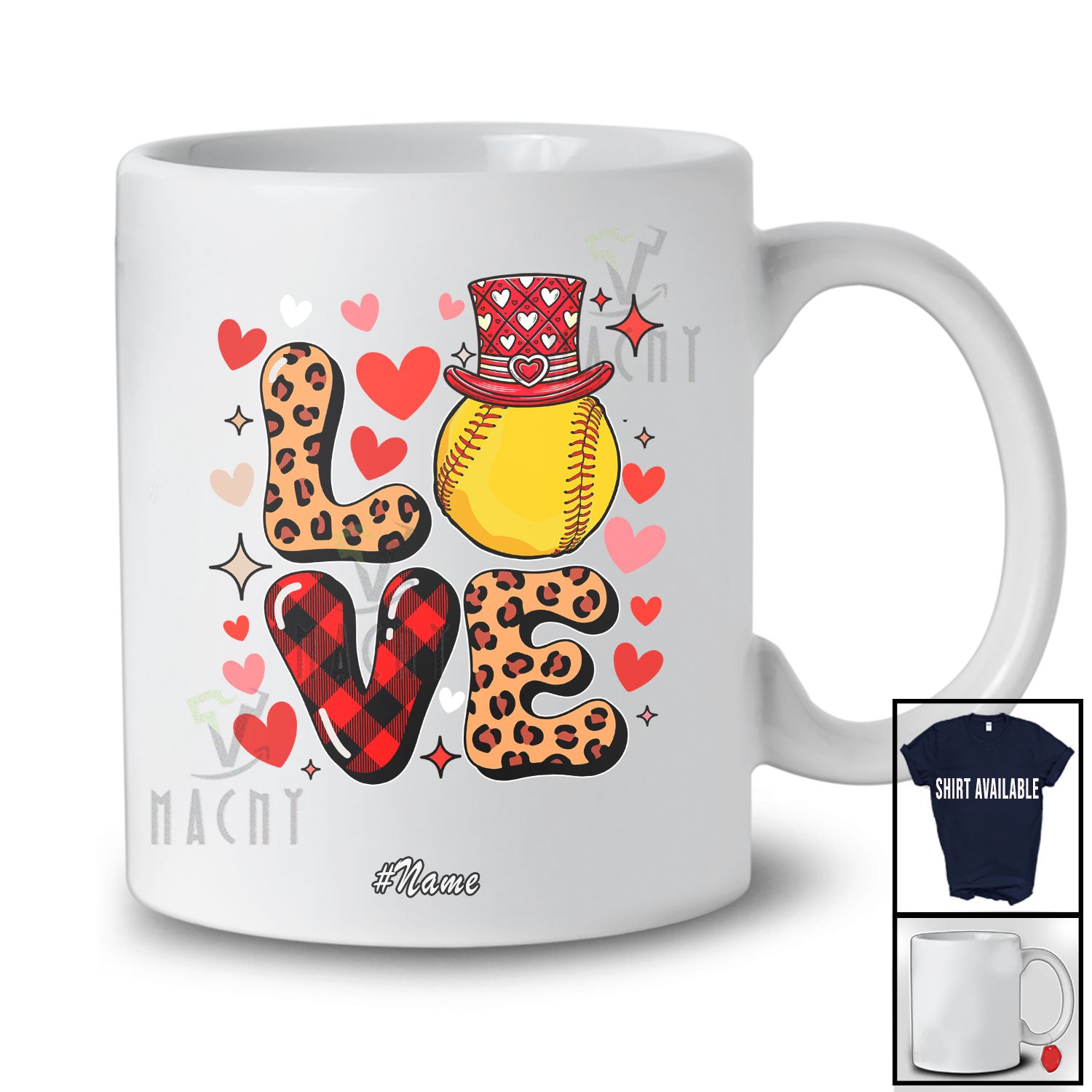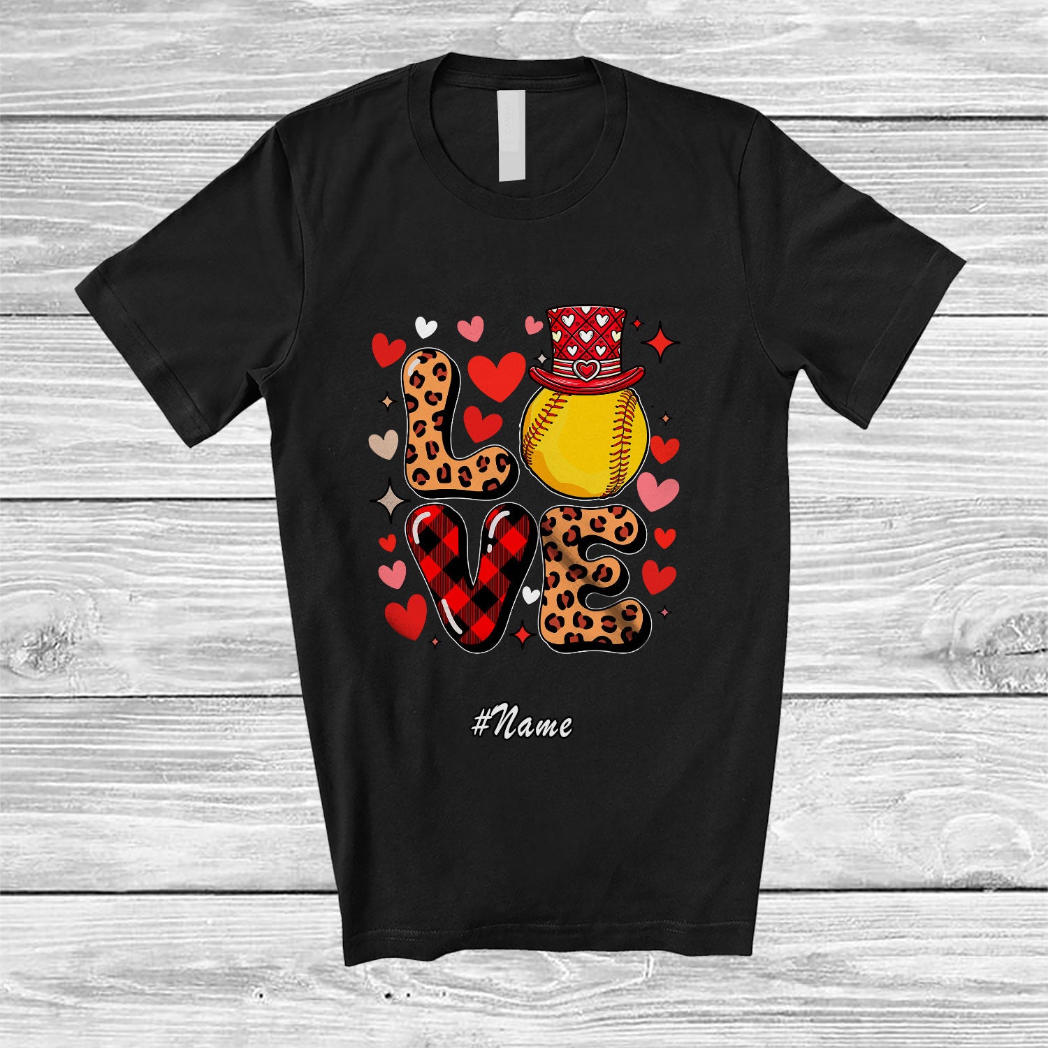 • Personalized Custom Name LOVE; Amusing Valentine Red Leopard Plaid Softball Player Couple T-Shirt. This cotton t-shirt is a durable staple product with a classic fit. One of the most popular items, it has a relaxed style made for everyday and casual wear.