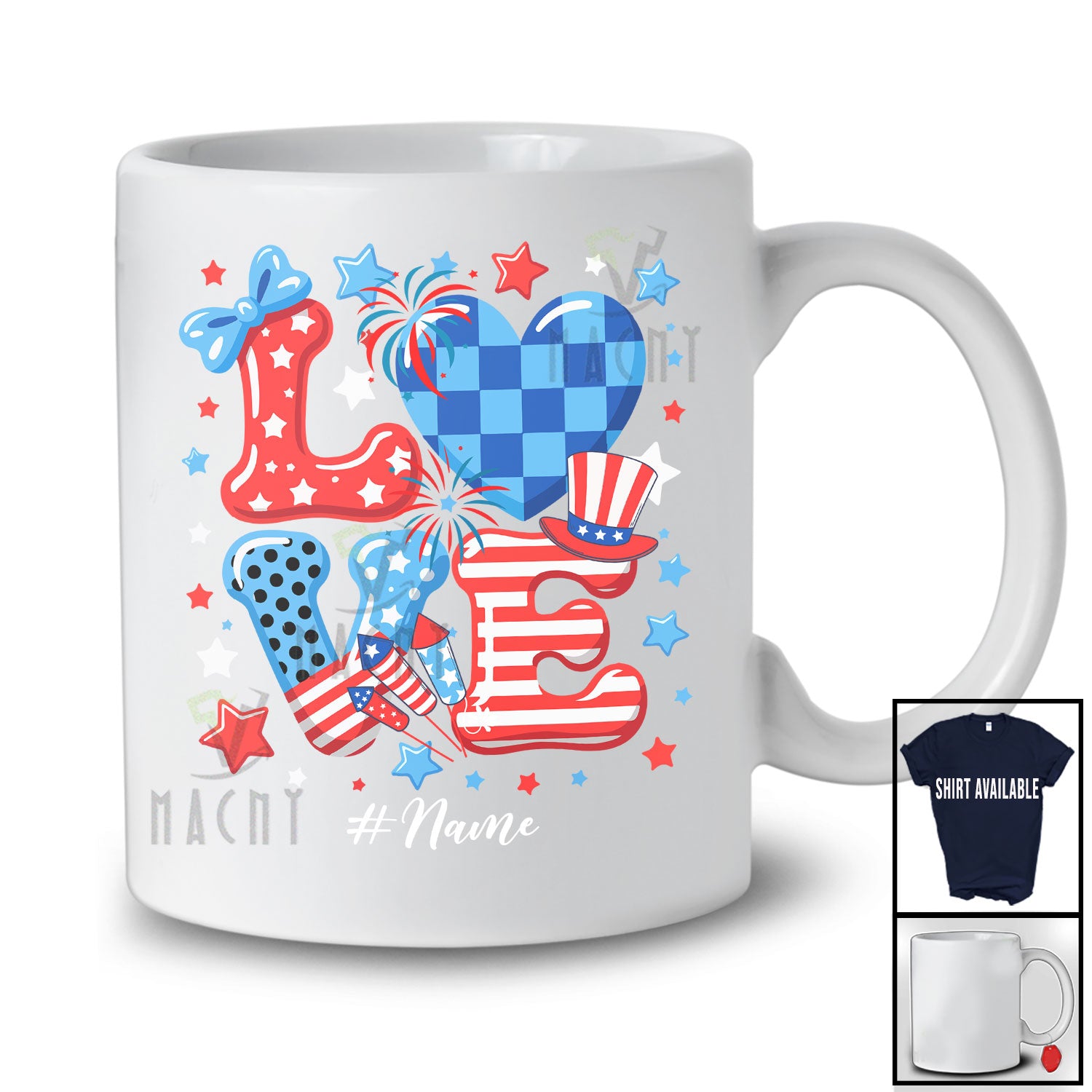 new MacnyStore - Personalized Custom Name LOVE; Awesome 4th of July American Flag Heart Firecracker; Patriotic T-Shirt – Macnystore
