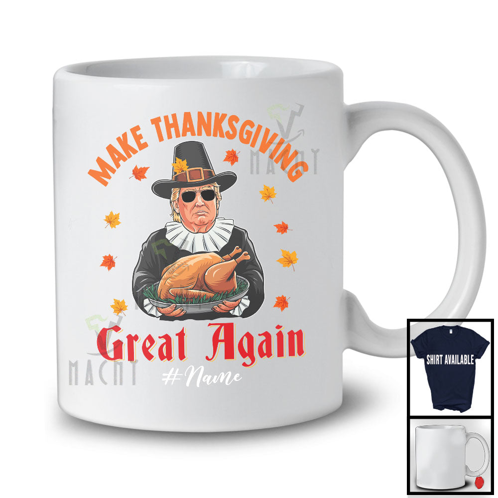 Personalized Custom Name Make Thanksgiving Great Again; Cool Pilgrim Trump President; Patriotic T-Shirt. This cotton t-shirt is a durable staple product with a classic fit. One of the most popular items, it has a relaxed style made for everyday and casual wear.