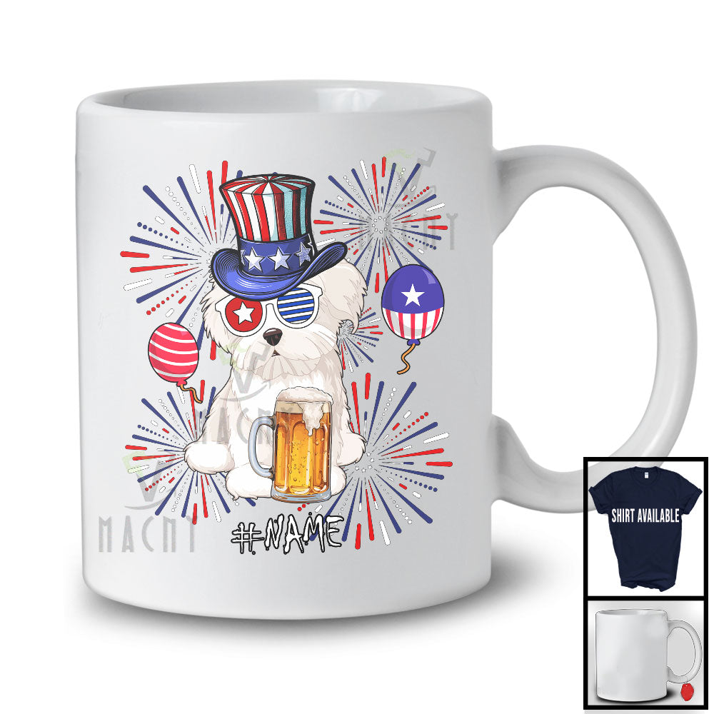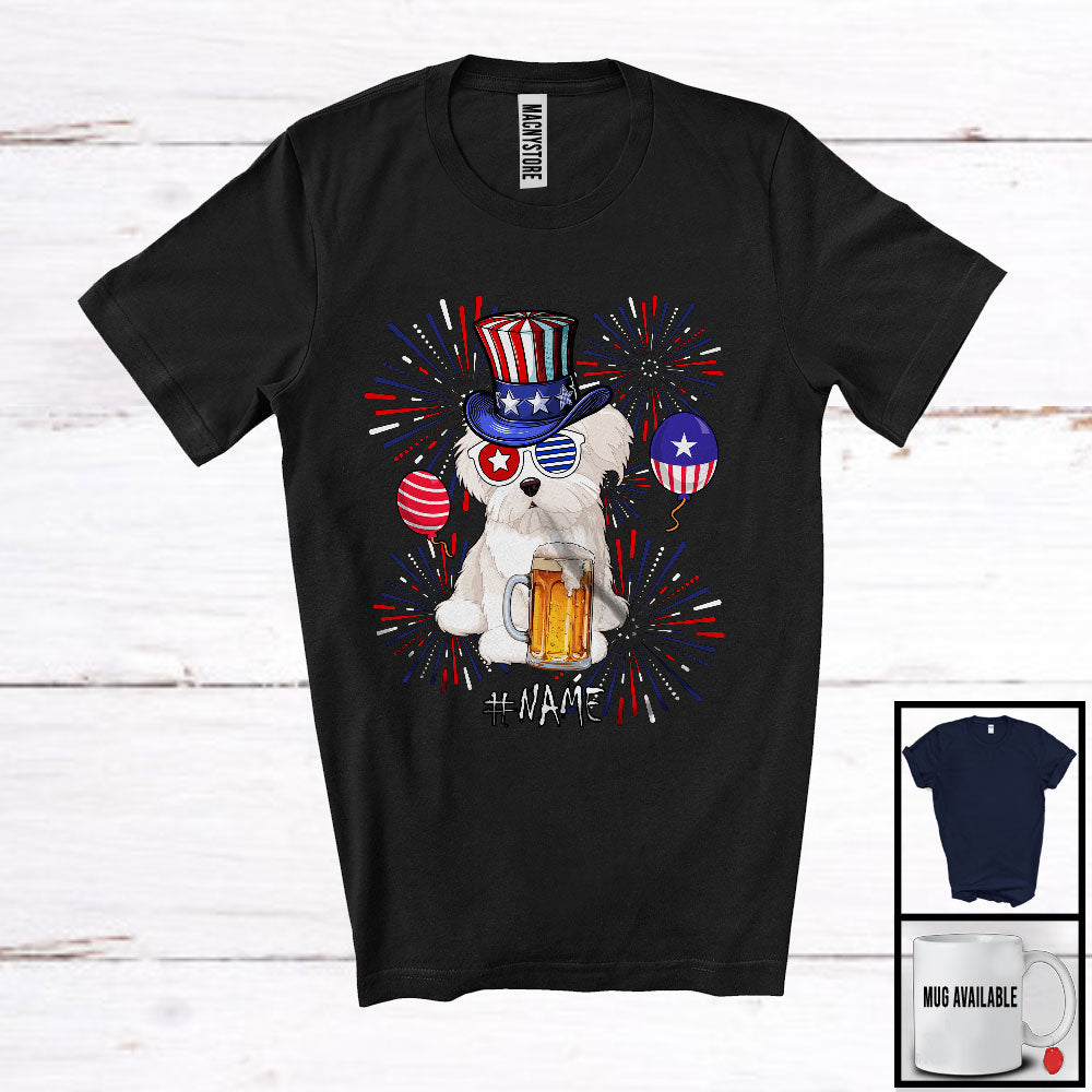 Personalized Custom Name Maltese Drinking Beer, Lovely 4th Of July Fireworks, Patriotic T-Shirt