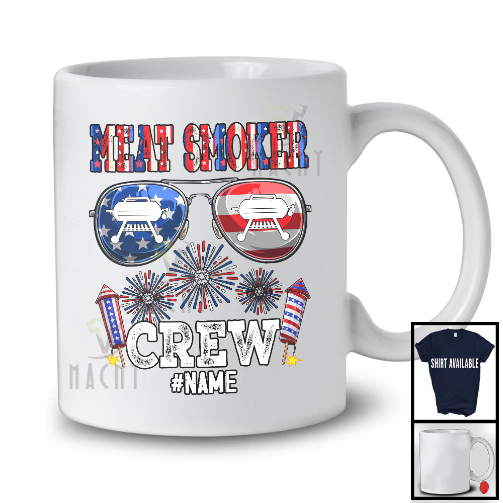• Personalized Custom Name Meat Smoker Crew, Joyful 4th Of July Sunglasses, Careers Patriotic T-Shirt. This cotton t-shirt is a durable staple product with a classic fit. One of the most popular items, it has a relaxed style made for everyday and casual wear.