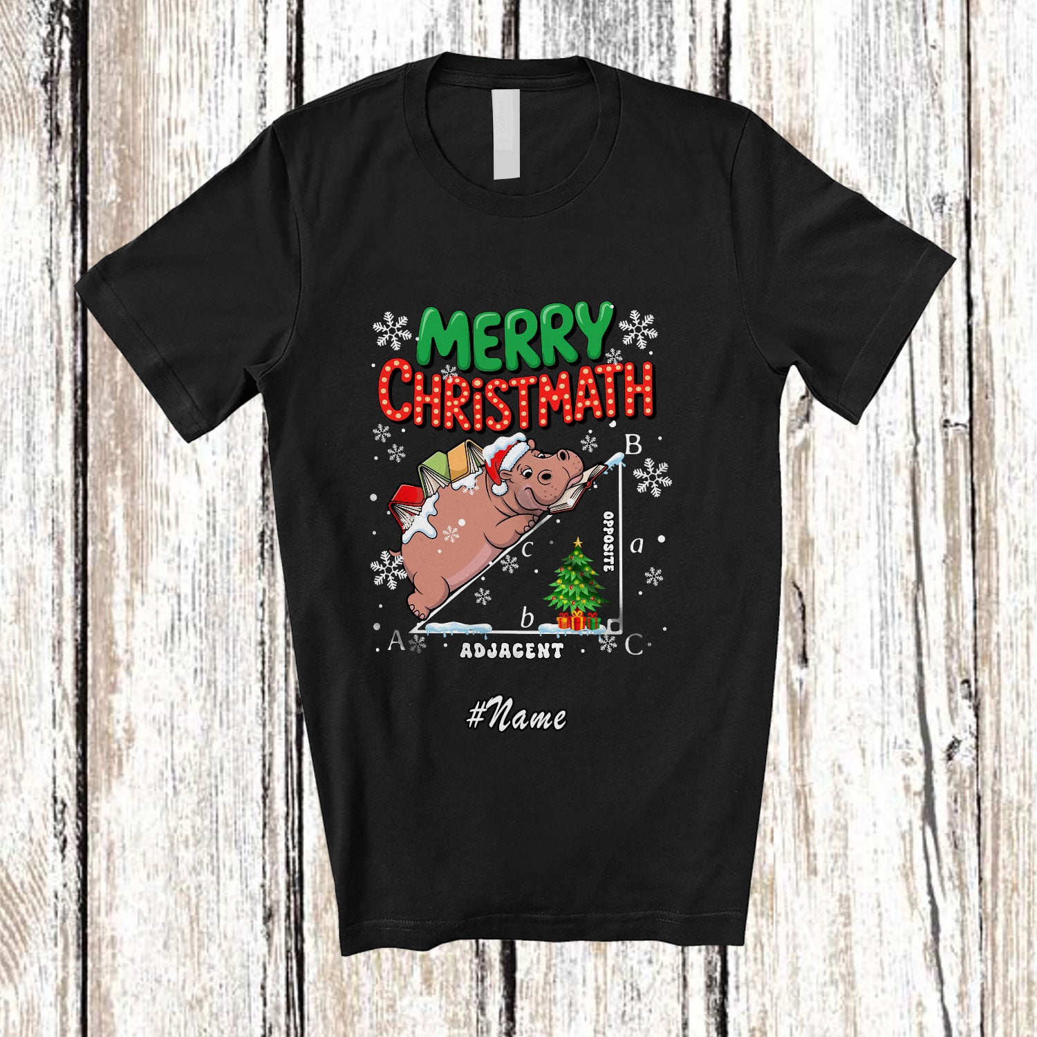 Personalized Custom Name Merry Christmath; Lovely Christmas Math Hippopotamus Santa Teacher T-Shirt