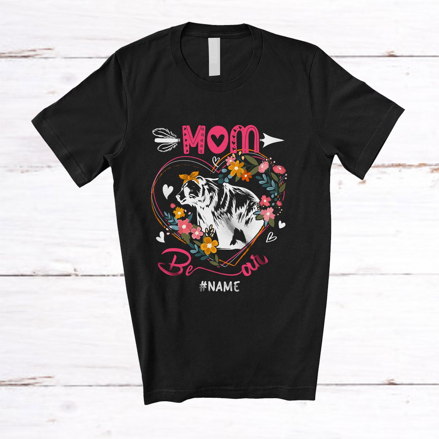 • Personalized Custom Name Mom Bear; Happy Mother's Day Bear In Flowers Heart Shape; Family T-Shirt. This cotton t-shirt is a durable staple product with a classic fit. One of the most popular items, it has a relaxed style made for everyday and casual wear.