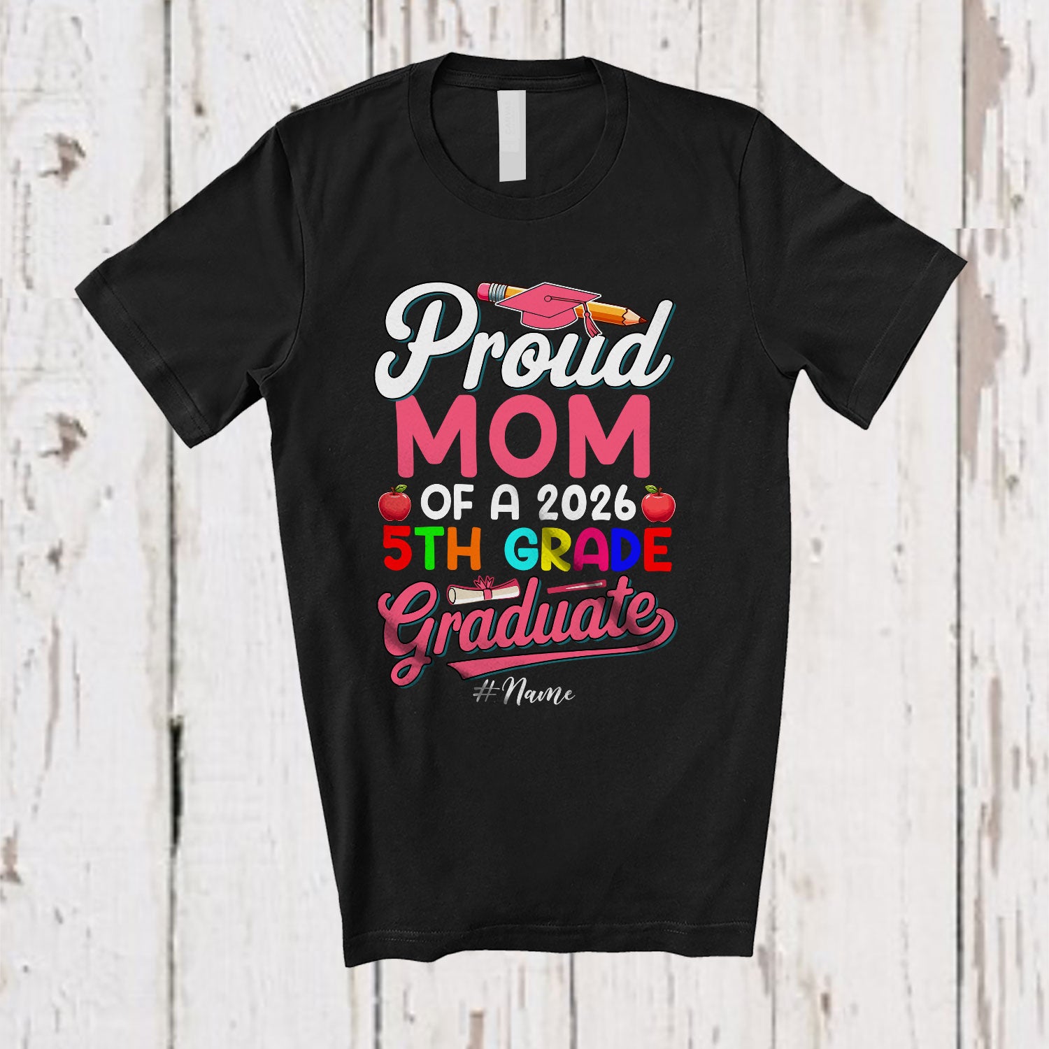 Personalized Custom Name; Mom Class Of 2026 5th Grade Graduate; Lovely Mother's Day Family T-Shirt. This cotton t-shirt is a durable staple product with a classic fit. One of the most popular items, it has a relaxed style made for everyday and casual wear.