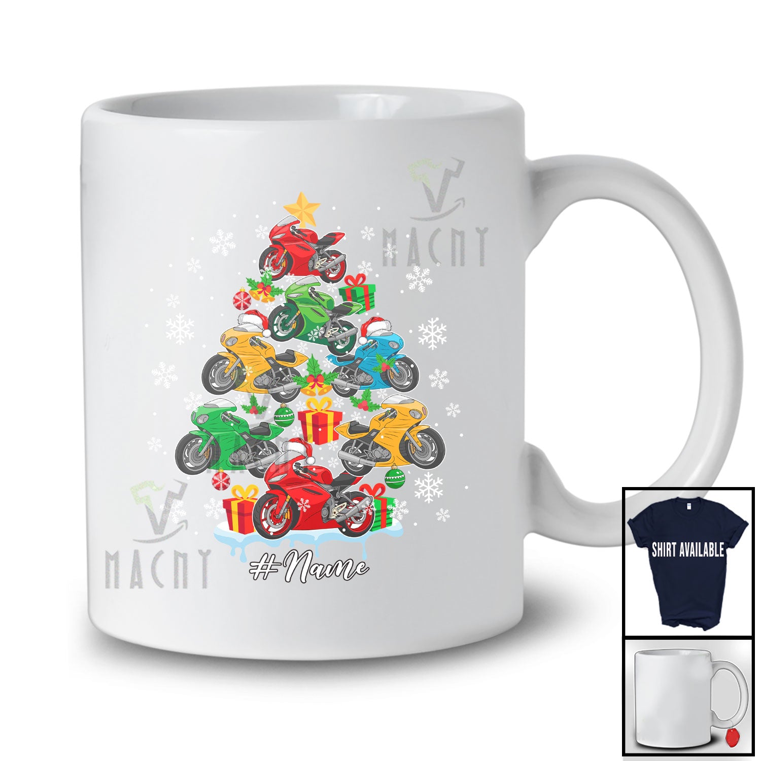 The Personalized Custom Name Motorbike Santa Christmas Tree; Joyful Motorbike Rider; Boys Family T-Shirt is far and away, one of our most popular items. People can't seem to get enough of it.