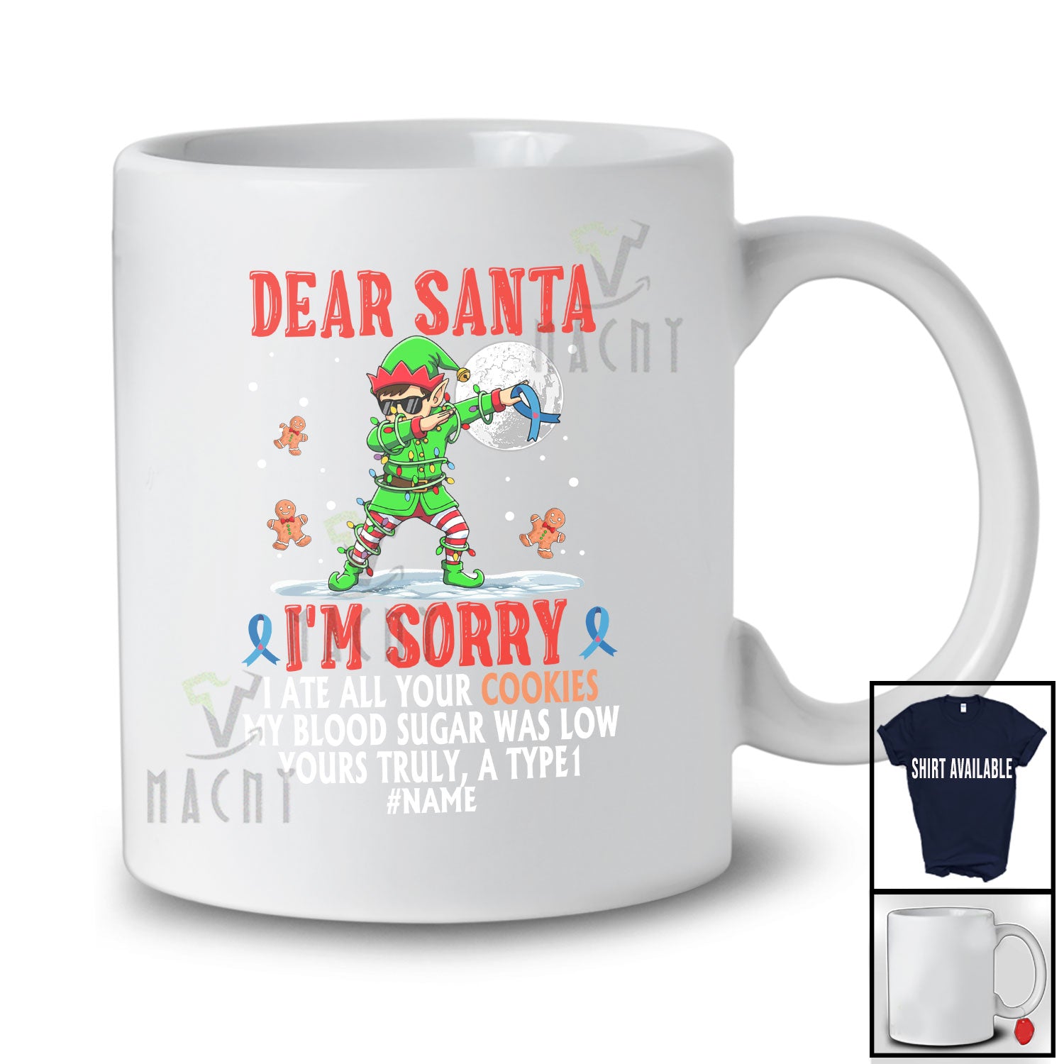 Personalized Custom Name My Blood Sugar Low; Joyful Diabetes Ribbon Christmas Dabbing Elf T-Shirt. This cotton t-shirt is a durable staple product with a classic fit. One of the most popular items, it has a relaxed style made for everyday and casual wear.
