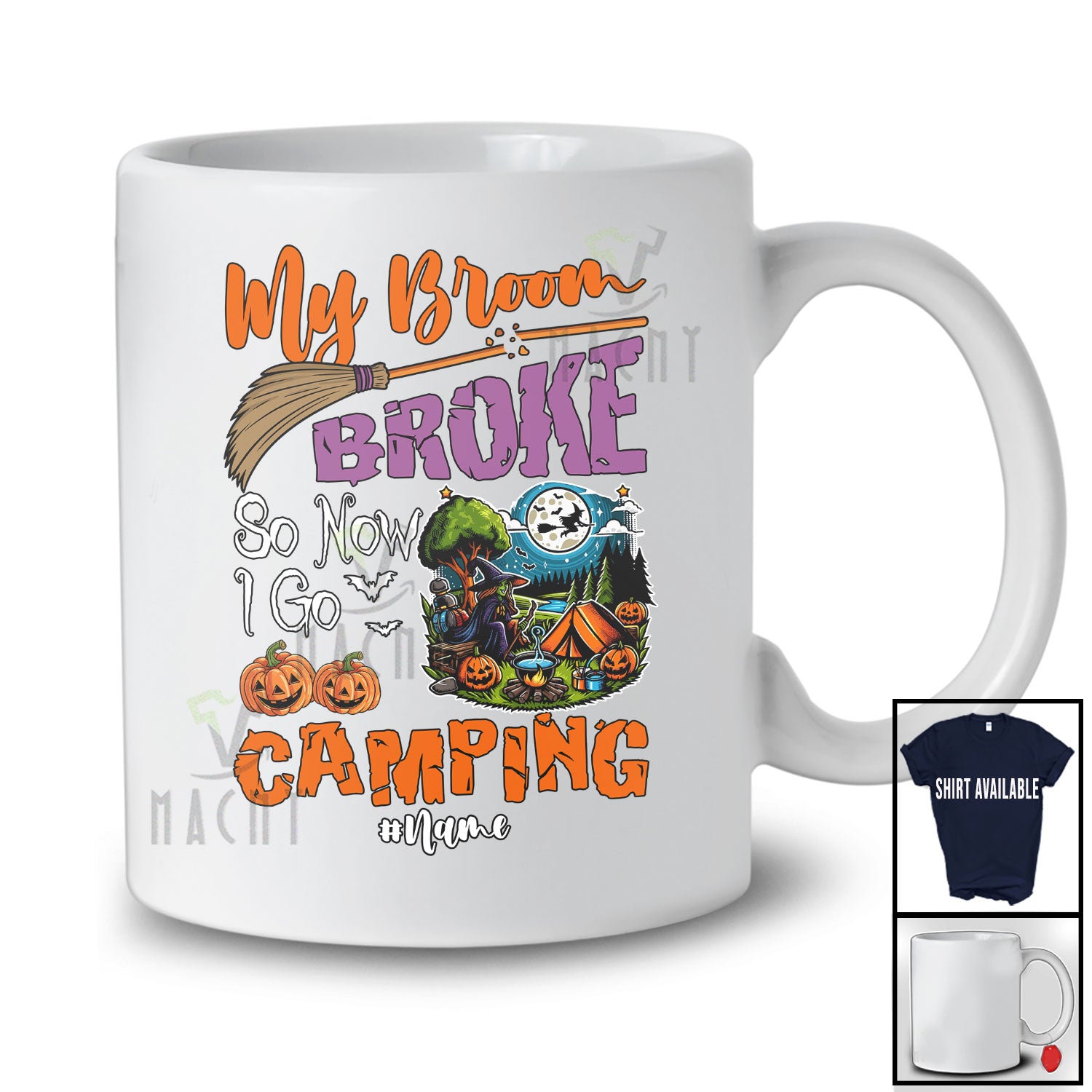 Personalized Custom Name My Broom Broke I Go Camping; Joyful Halloween Witch Family T-Shirt. This cotton t-shirt is a durable staple product with a classic fit. One of the most popular items, it has a relaxed style made for everyday and casual wear.