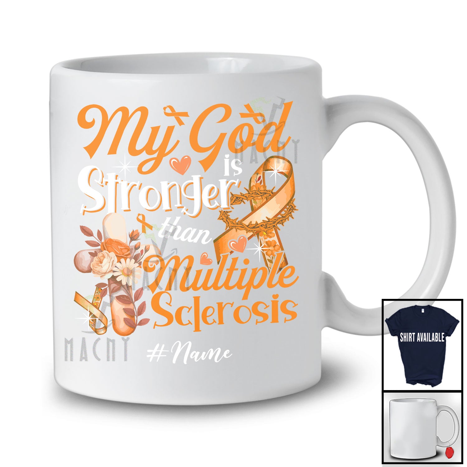 This Personalized Custom Name My God Is Stronger Than Multiple Sclerosis; Proud Orange Ribbon T-Shirt is great idea gift for your family, friends in this birthday, christmas, mother's day, father's day, patrick's day or any holiday.