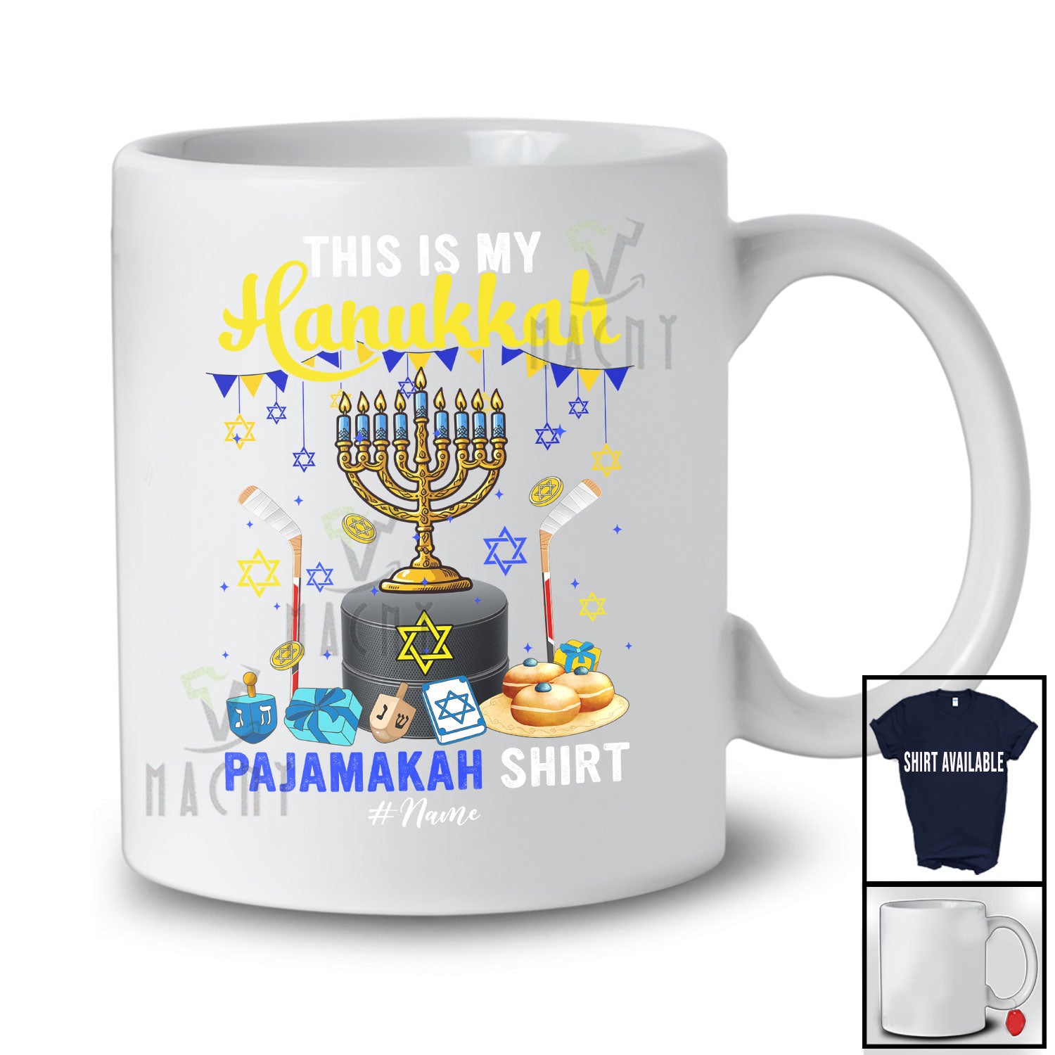 new MacnyStore - Personalized Custom Name My Hanukkah Pajama Shirt; Joyful Custom Name Hockey Stick Player T-Shirt – Macnystore