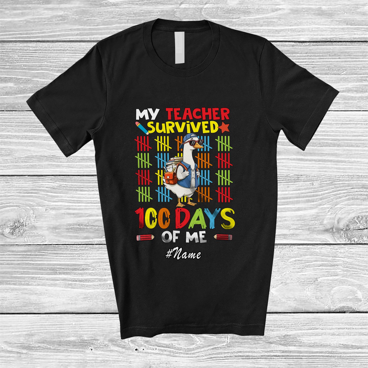 Personalized Custom Name My Teacher Survived 100 Days Of Me; Joyful 100th Day Students Goose T-Shirt