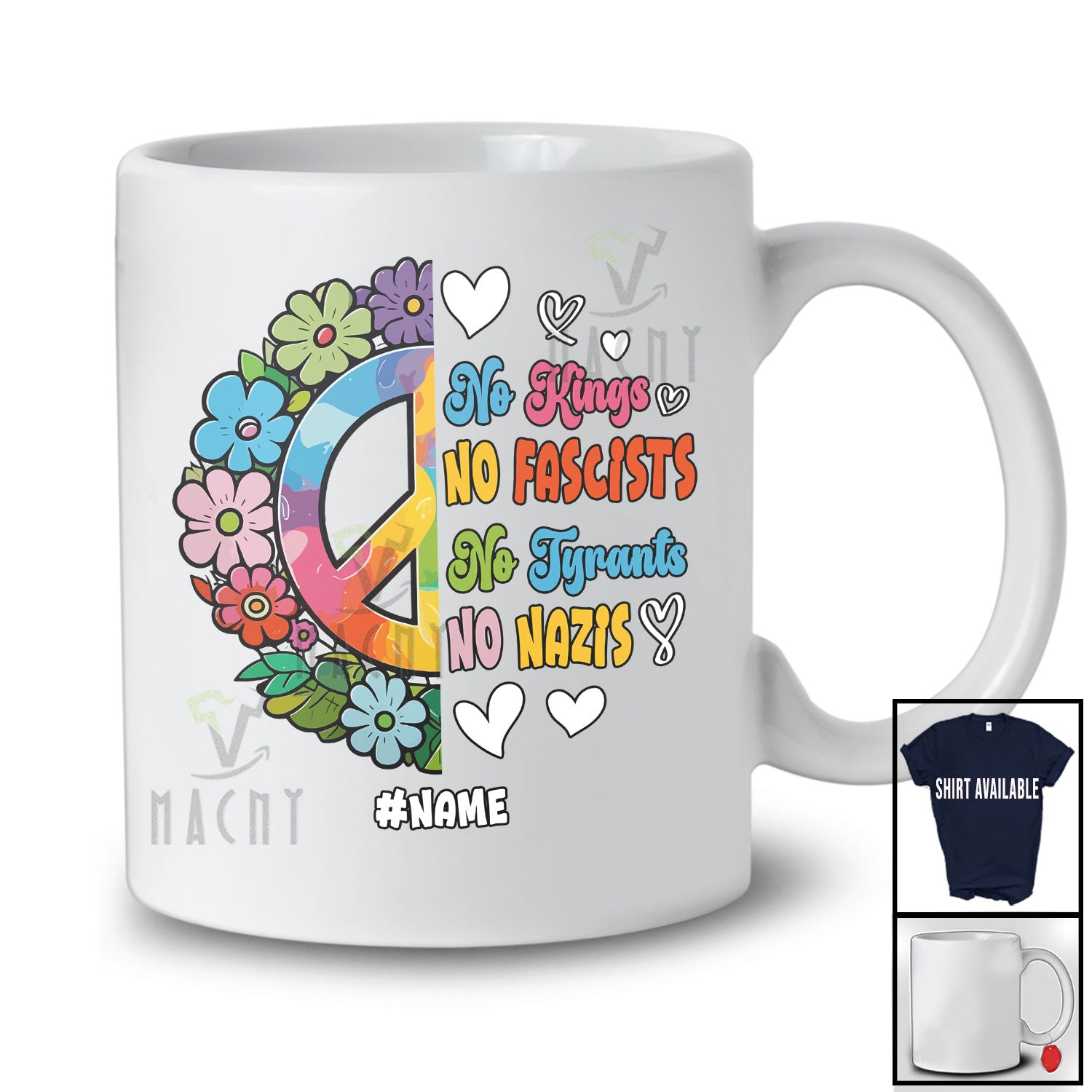 This Personalized Custom Name No Kings No Fascists No Tyrants No Nazis; Lovely Peace Sign Floral T-Shirt is great idea gift for your family, friends in this birthday, christmas, mother's day, father's day, patrick's day or any holiday.