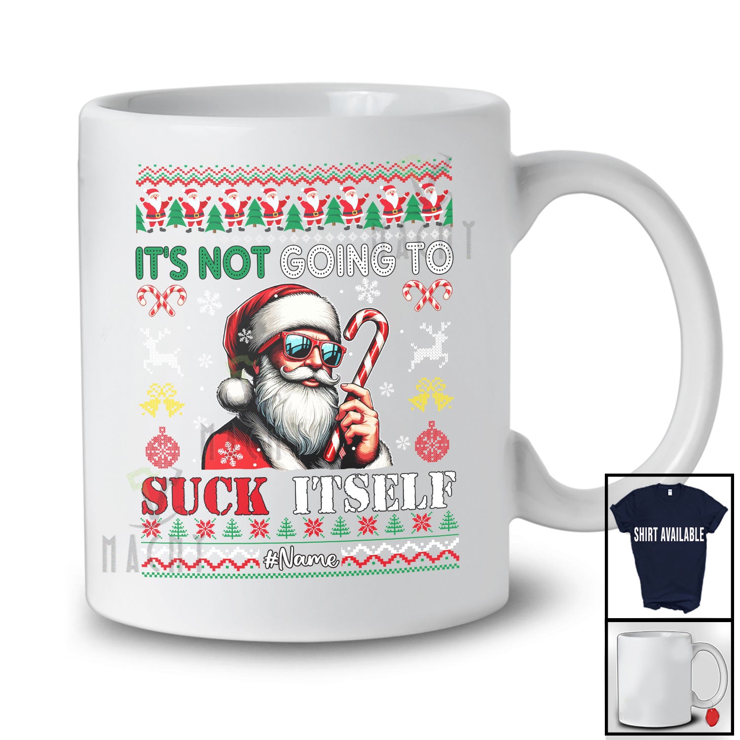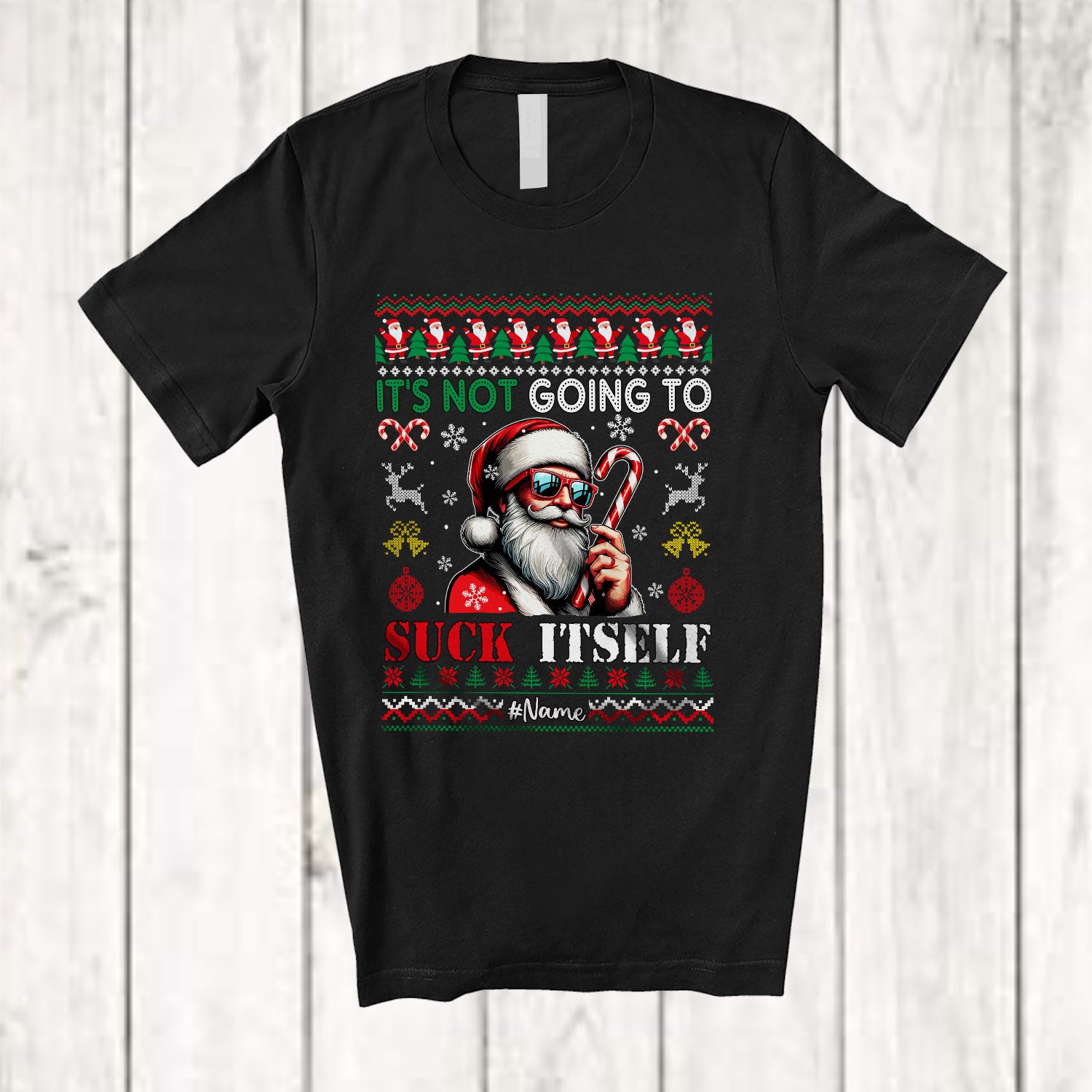 Personalized Custom Name Not Going To Suck Itself; Amazing Christmas Sweater Candy Cane Santa T-Shirt. This cotton t-shirt is a durable staple product with a classic fit. One of the most popular items, it has a relaxed style made for everyday and casual wear.