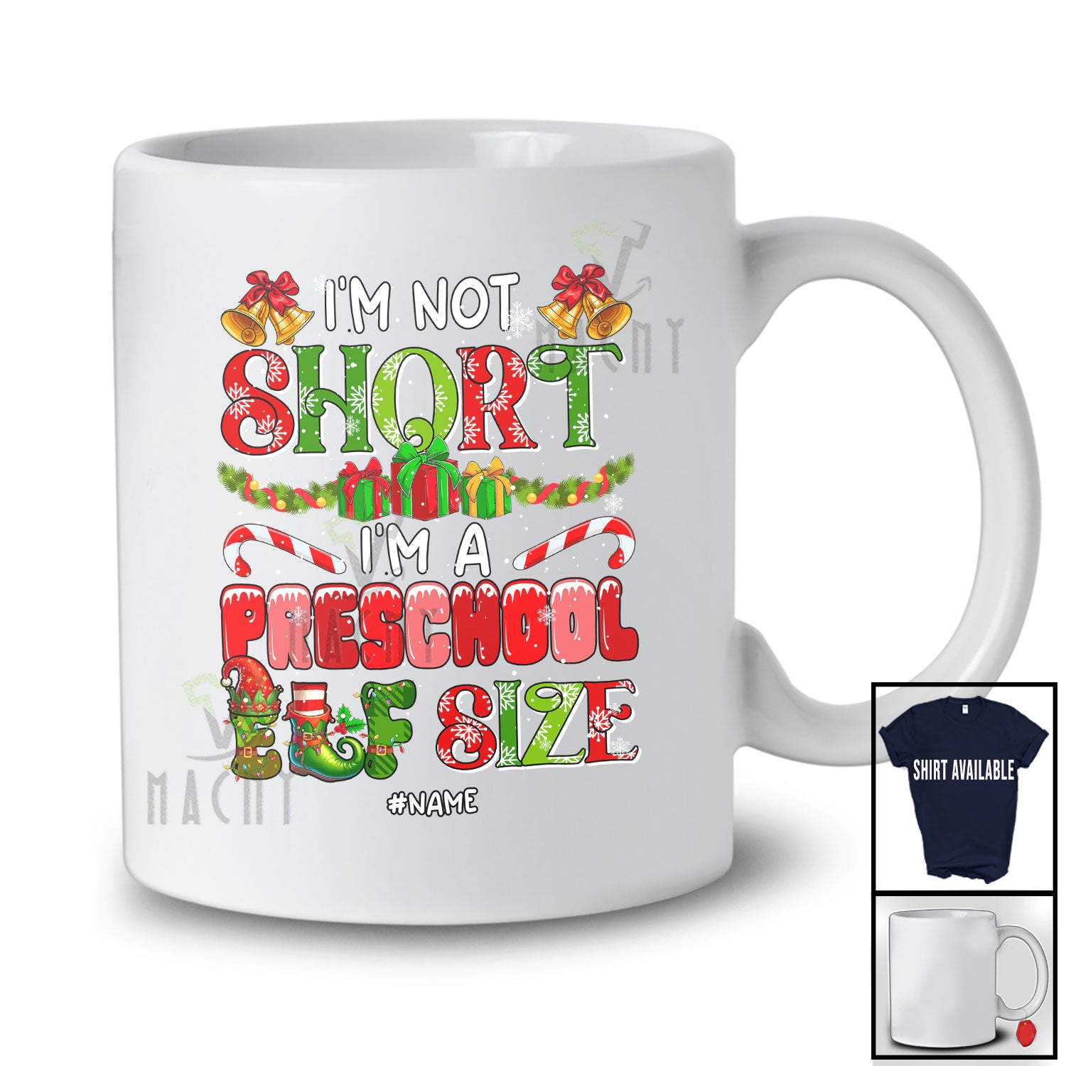 • Personalized Custom Name Not Short I'm A Preschool Elf Size; Proud Christmas Students Teacher T-Shirt. This cotton t-shirt is a durable staple product with a classic fit. One of the most popular items, it has a relaxed style made for everyday and casual wear.