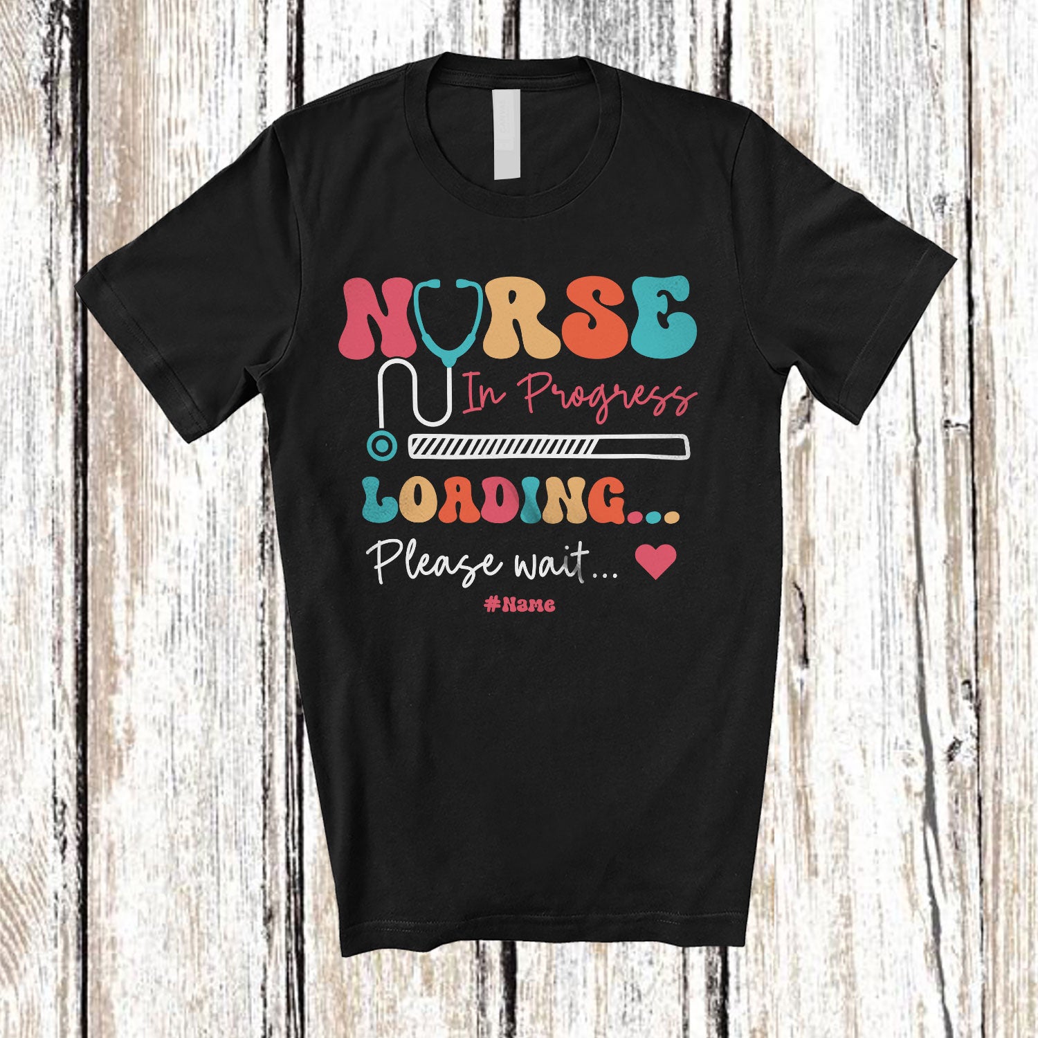 Personalized Custom Name Nurse In Progress Loading; Amusing Future Jobs Careers Proud T-Shirt. This cotton t-shirt is a durable staple product with a classic fit. One of the most popular items, it has a relaxed style made for everyday and casual wear.