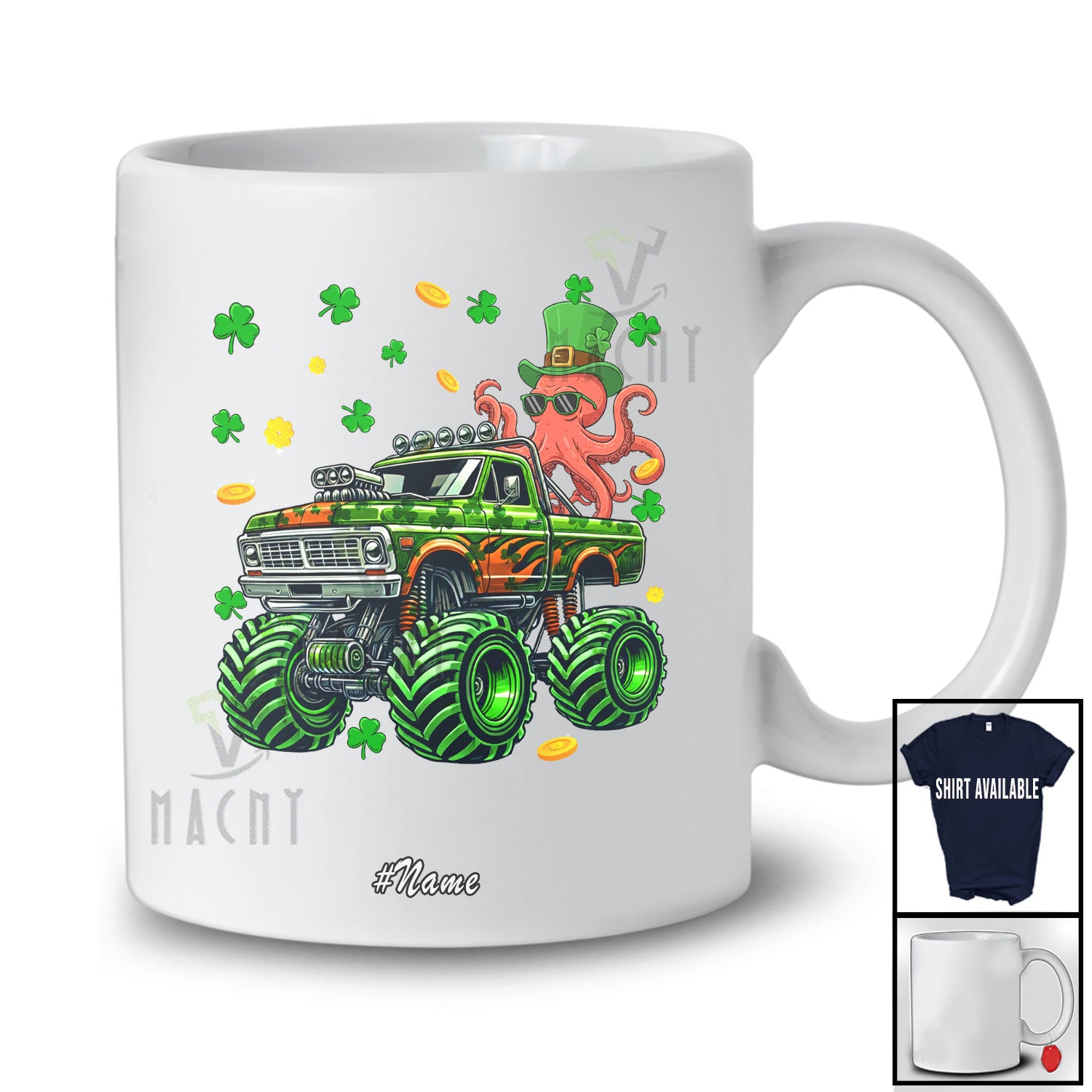 new MacnyStore - Personalized Custom Name Octopus On Monster Truck; Joyful St. Patrick's Day Shamrock Sea Animal T-Shirt – Macnystore