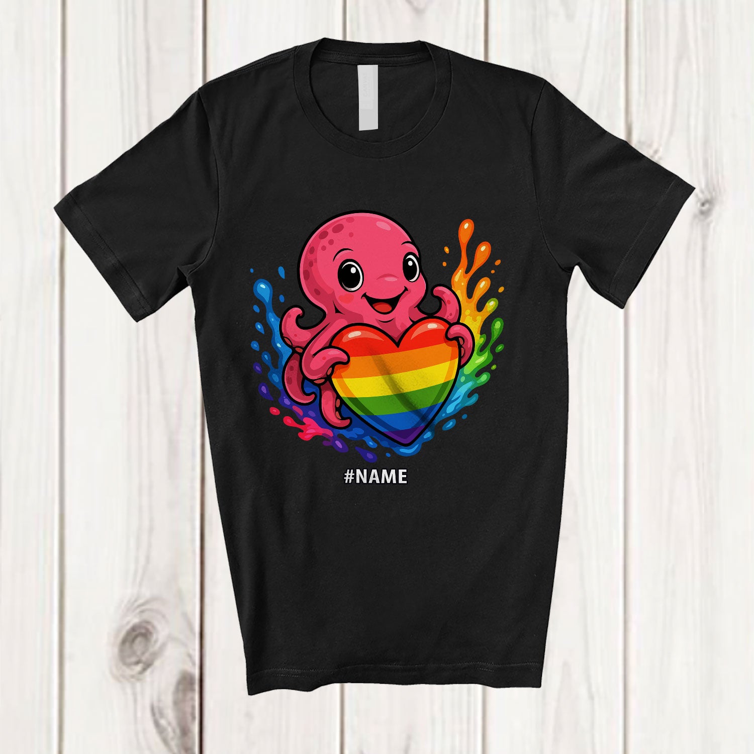 Personalized Custom Name Octopus Rainbow Heart Progressive; Lovely LGBTQ Pride Octopus T-Shirt