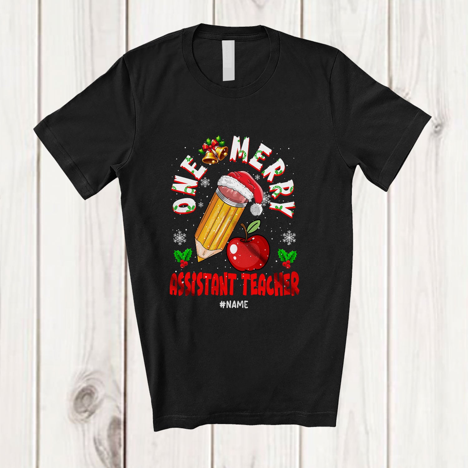 Personalized Custom Name One Merry Assistant Teacher; Fantastic Christmas Santa Jobs Careers T-Shirt
