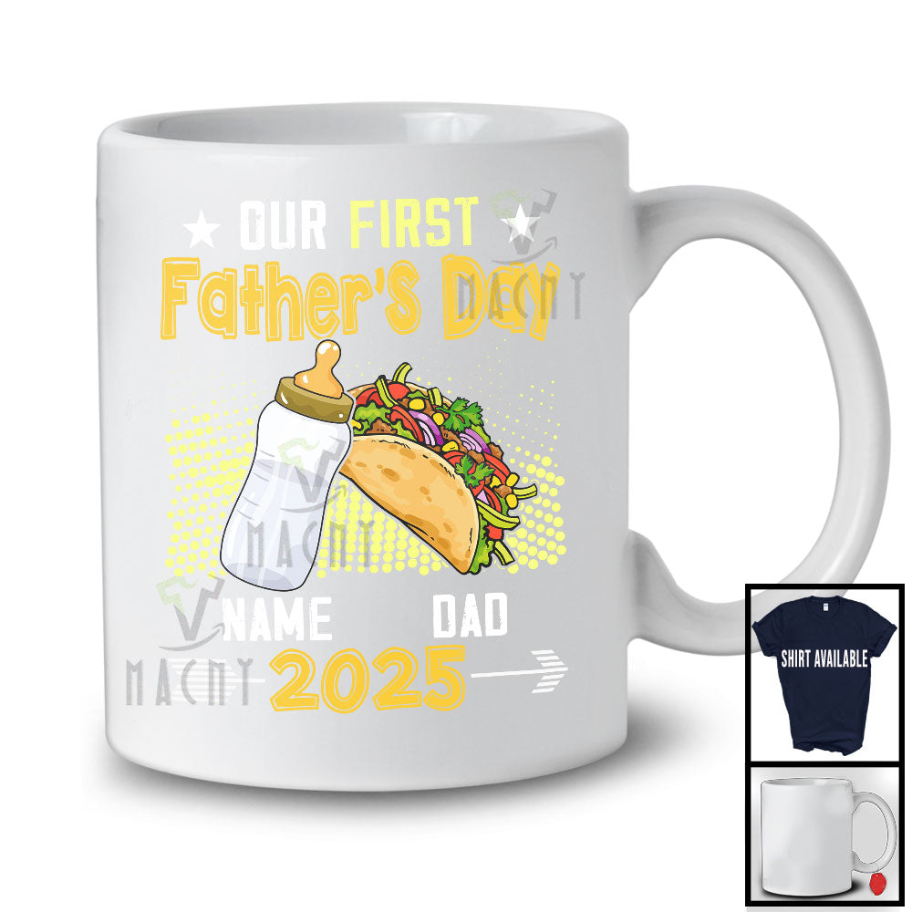 Personalized Custom Name Our First Father's Day, Humorous Taco Milk Bottle 2025, Cheers Family T-Shirt
