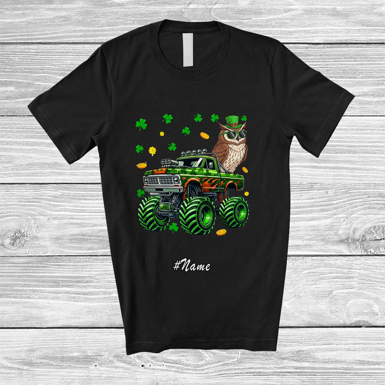 new MacnyStore - Personalized Custom Name Owl On Monster Truck; Joyful St. Patrick's Day Shamrock Bird T-Shirt – Macnystore