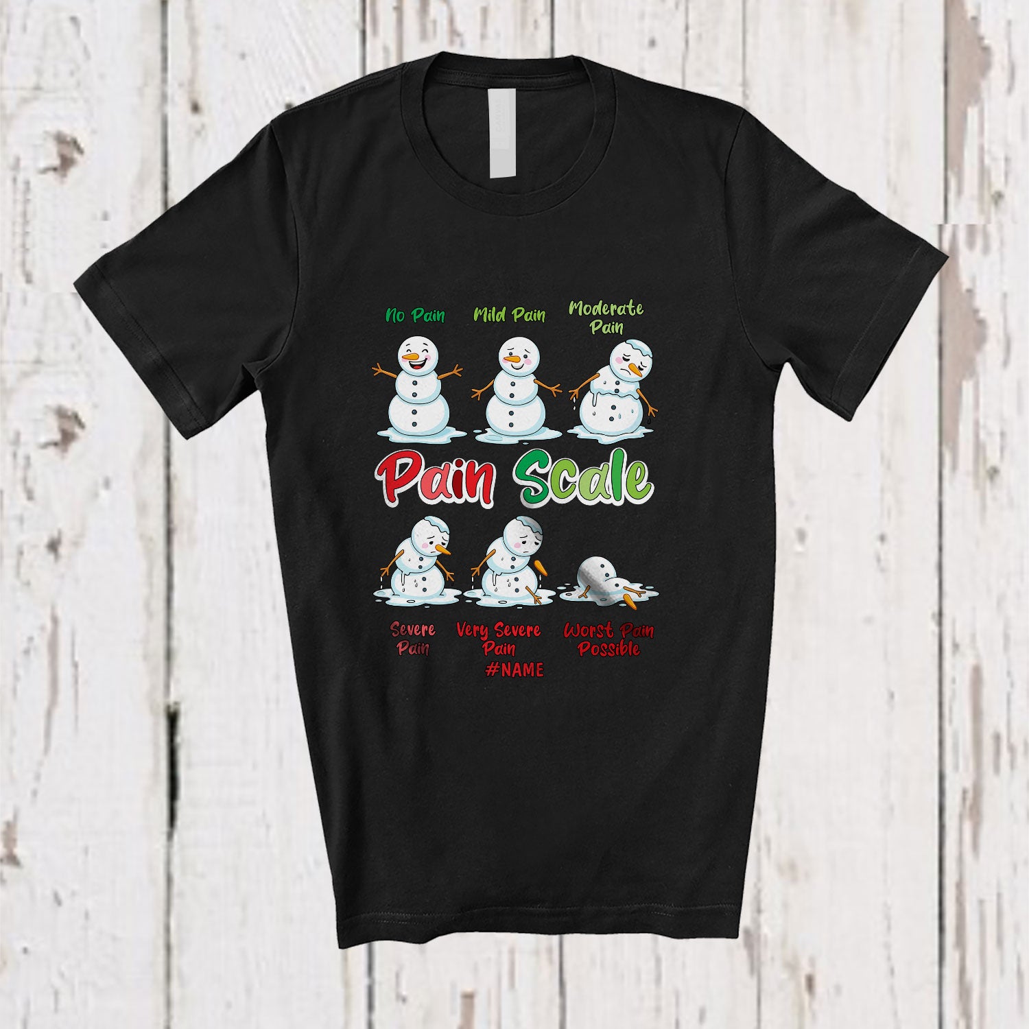 Personalized Custom Name Pain Scale; Amazing Christmas Snowman Collection Nurse Groovy T-Shirt