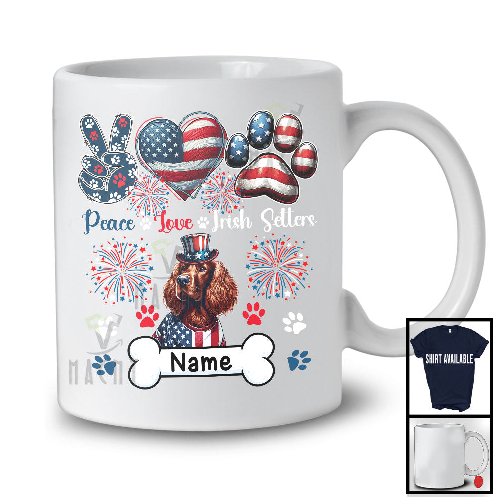 Personalized Custom Name Peace Love Irish Setters, Lovely 4th Of July American Flag Patriotic T-Shirt