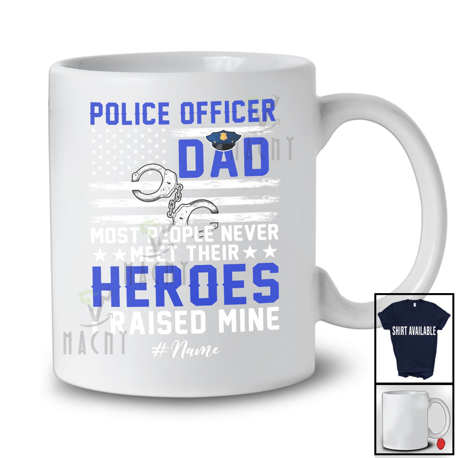 Personalized Custom Name Police Officer Dad I Raised Mine; Proud Father's Day US Flag; Family T-Shirt. This cotton t-shirt is a durable staple product with a classic fit. One of the most popular items, it has a relaxed style made for everyday and casual wear.