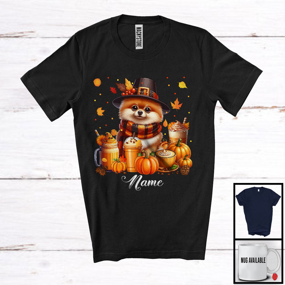 Personalized Custom Name Pomeranian Coffee Smoothie, Lovely Thanksgiving Pumpkin Drinks T-Shirt