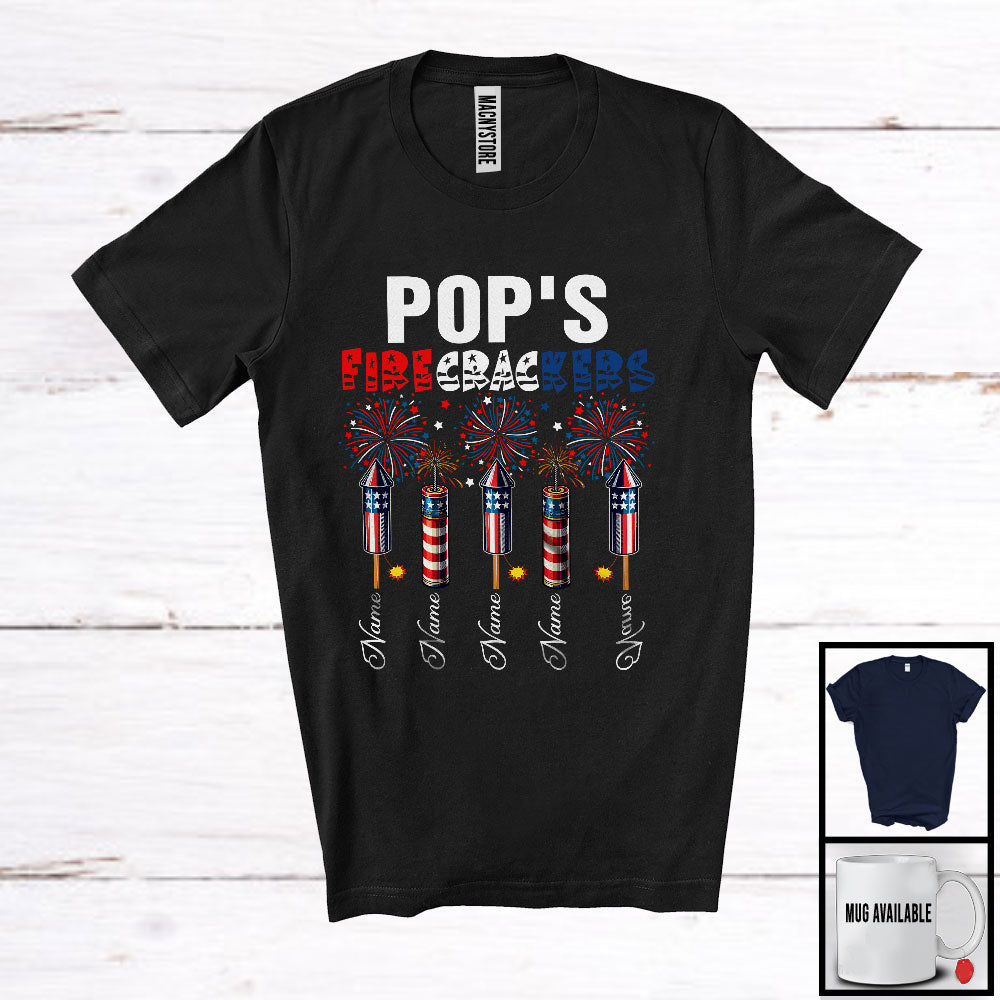Personalized Custom Name Pop's Firecrackers, Amazing 4th Of July Fireworks, Patriotic Family T-Shirt