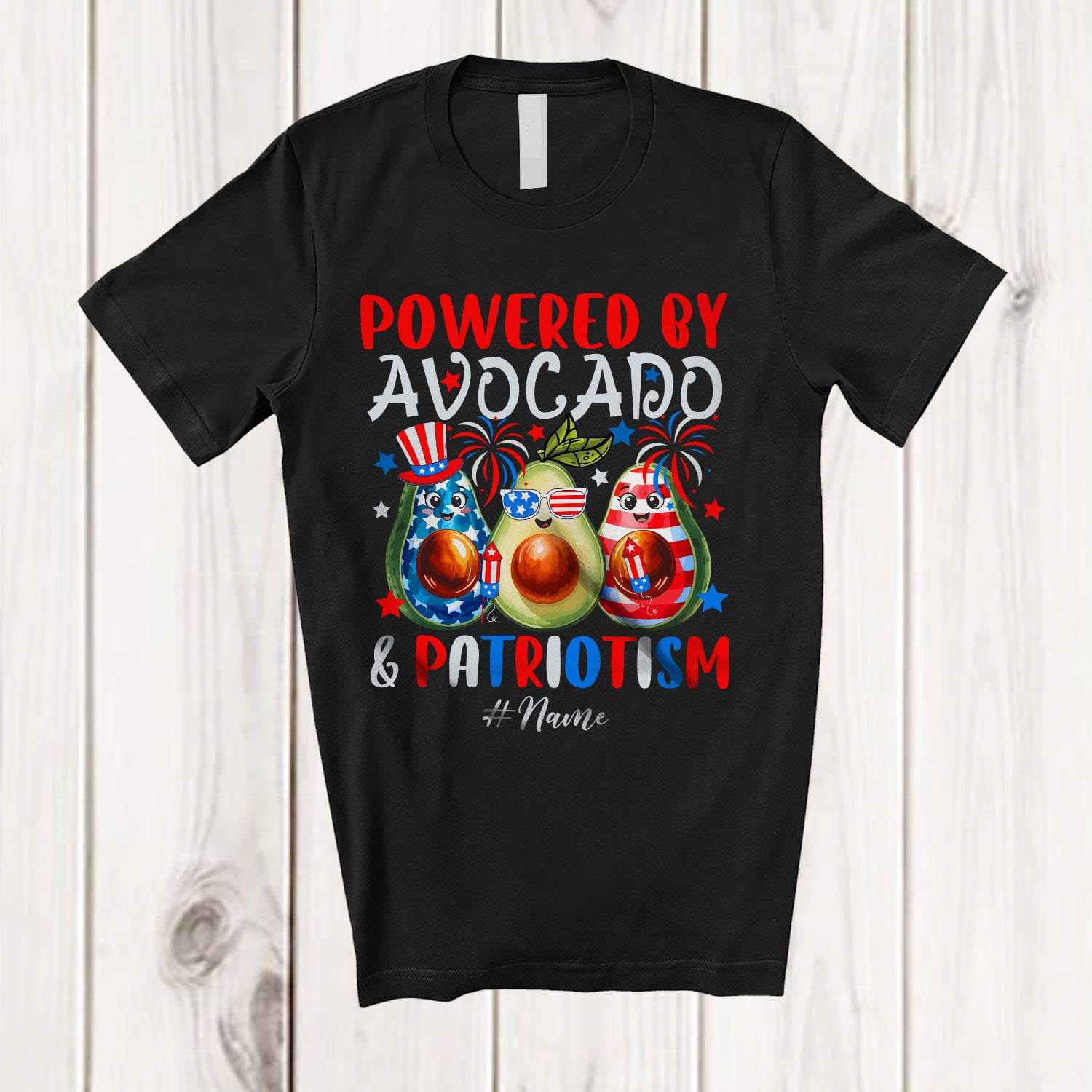 Personalized Custom Name Powered by Avocado And Patriotism; Lovely 4th Of July Patriotic T-Shirt