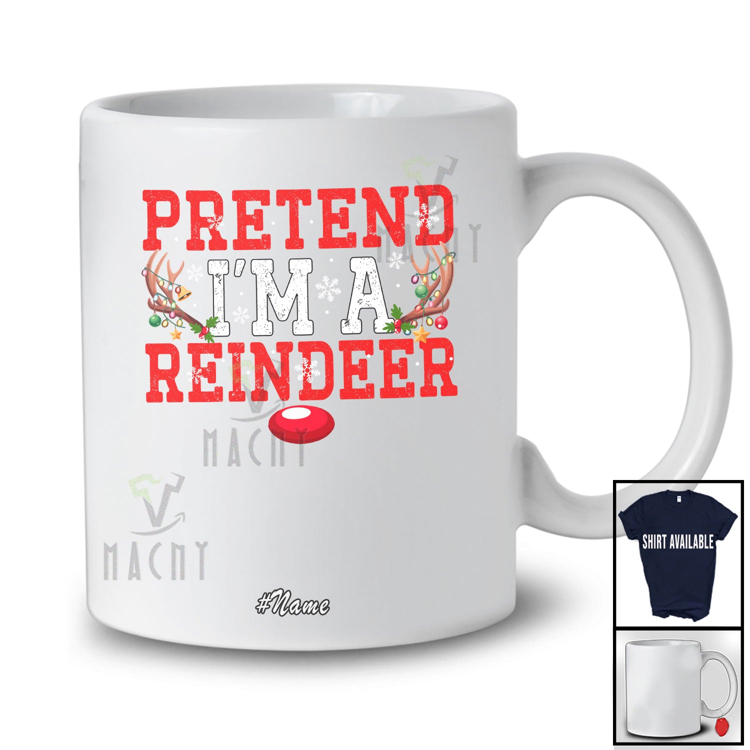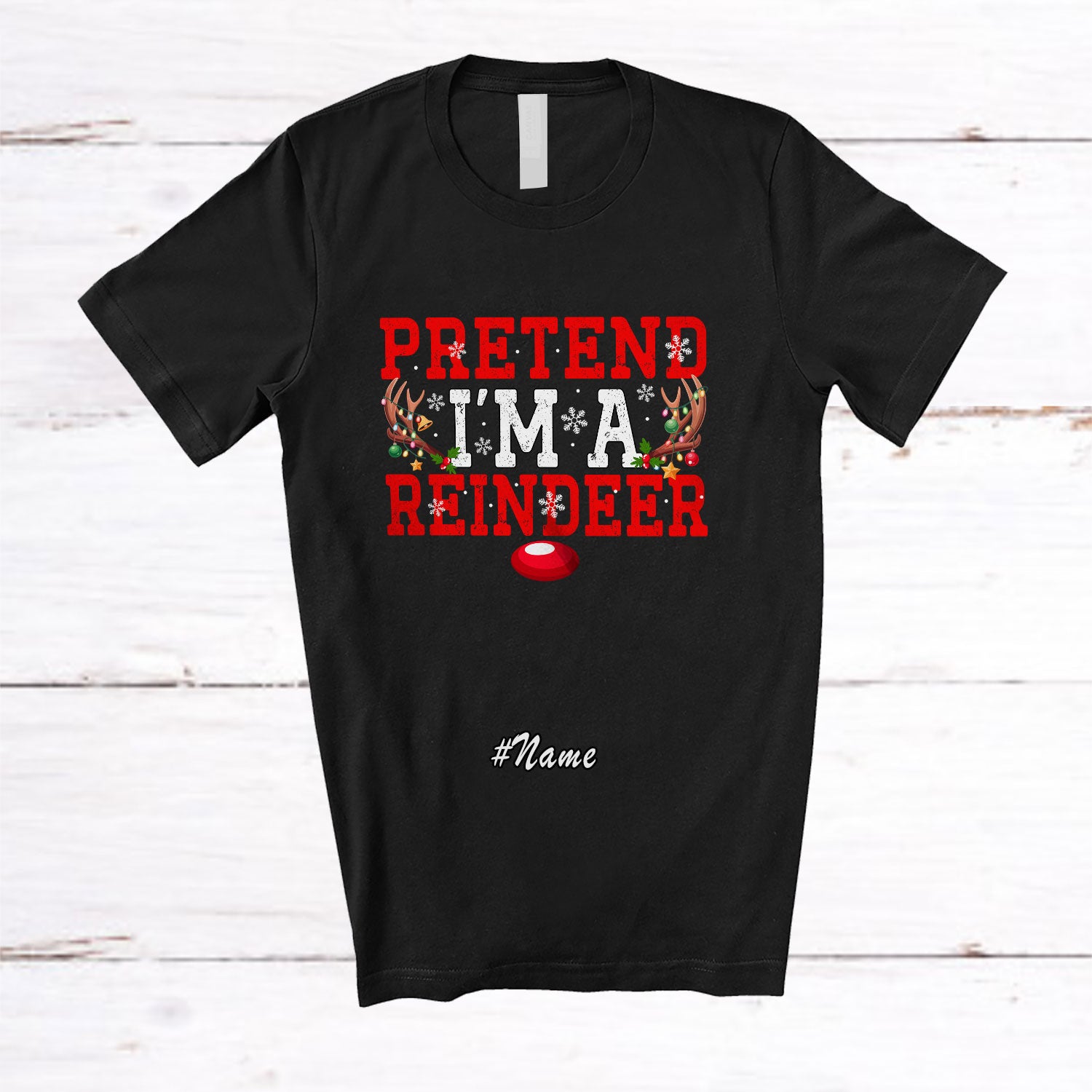 Personalized Custom Name Pretend I'm A Reindeer; Joyful Christmas Reindeer Face Cosplay; Family T-Shirt. This cotton t-shirt is a durable staple product with a classic fit. One of the most popular items, it has a relaxed style made for everyday and casual wear.