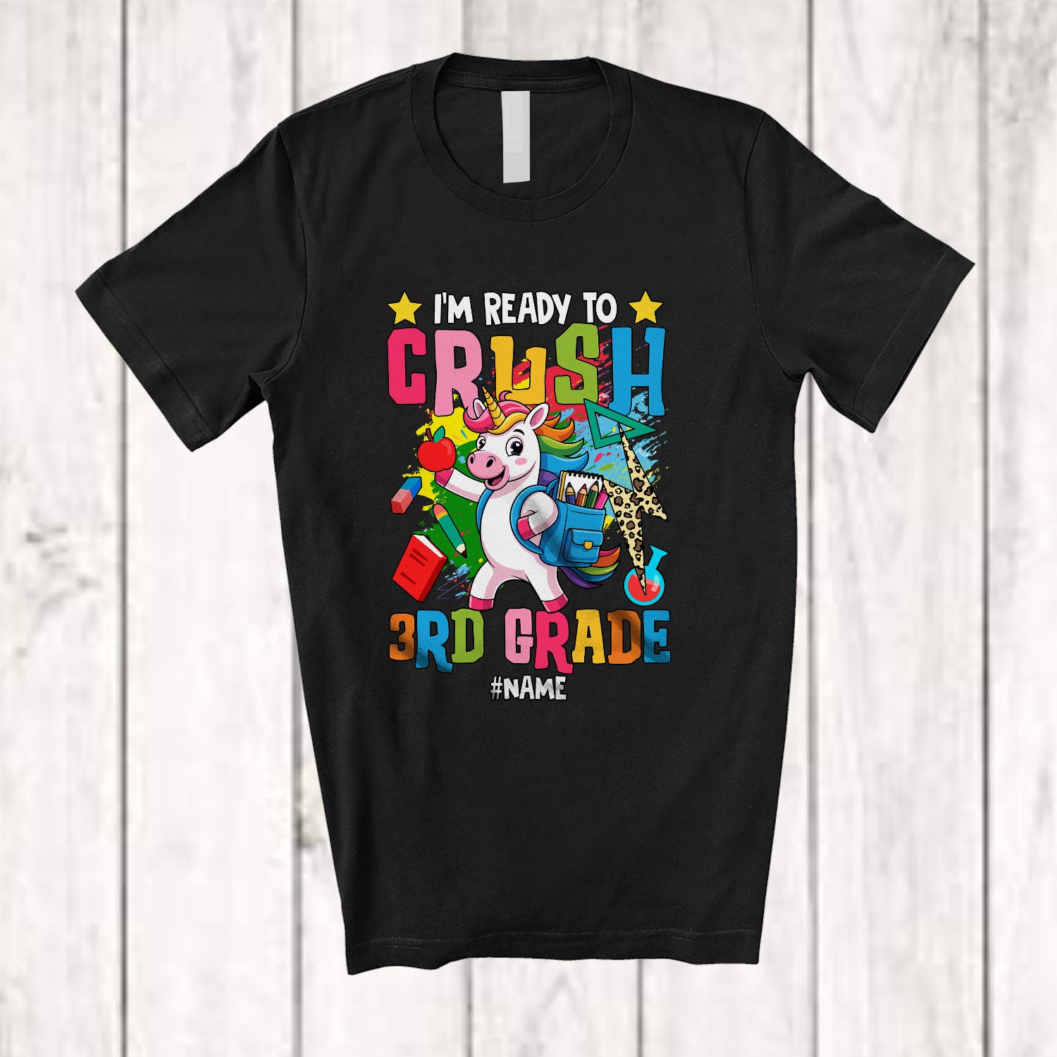Personalized Custom Name Ready To Crush 3rd Grade; Lovely Back To School Unicorn Teacher T-Shirt. This cotton t-shirt is a durable staple product with a classic fit. One of the most popular items, it has a relaxed style made for everyday and casual wear.