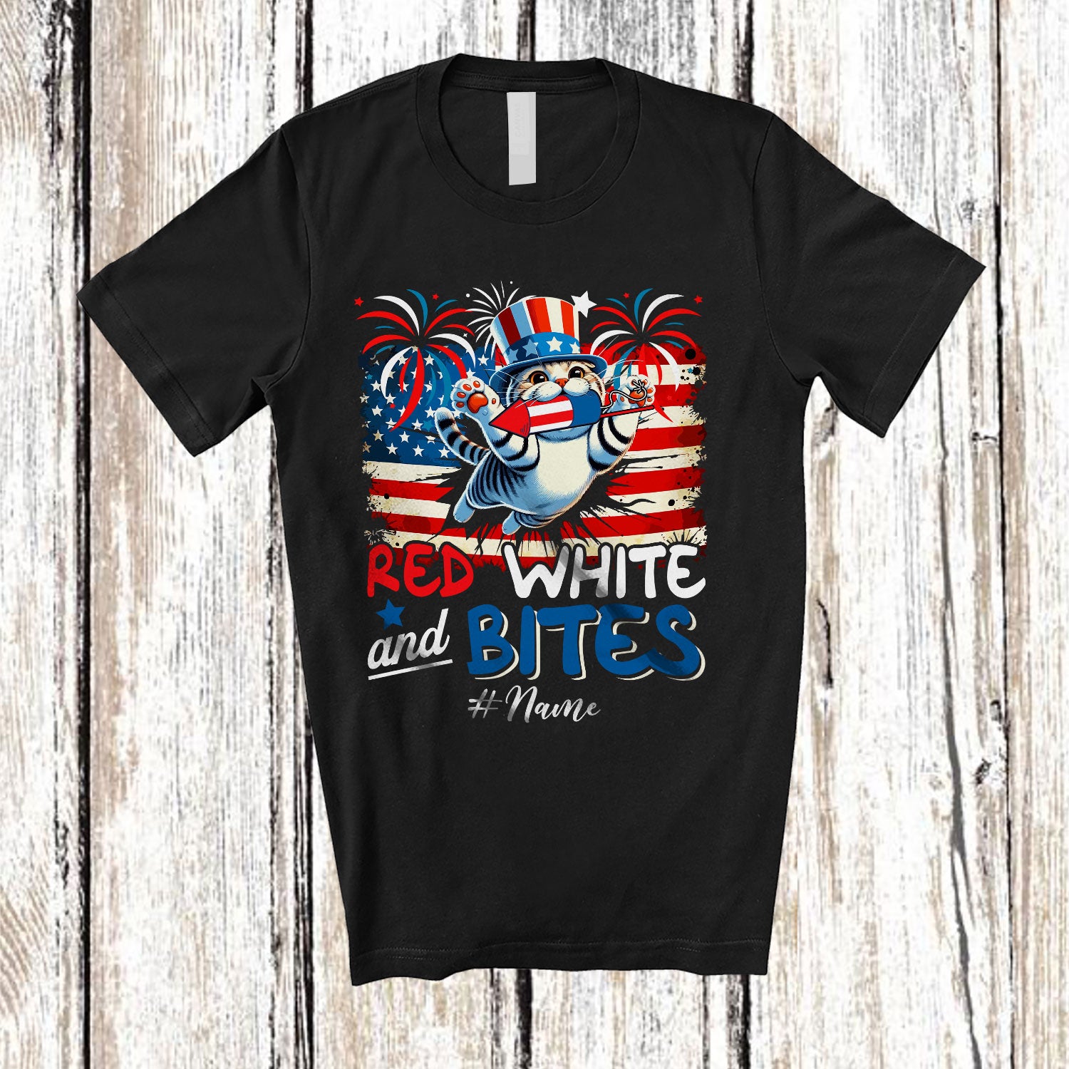 The Personalized Custom Name Red White And Bites; Proud 4th Of July Scottish Fold Cat; Patriotic T-Shirt destined to impress, and priced at only $12.95, for a limited time.