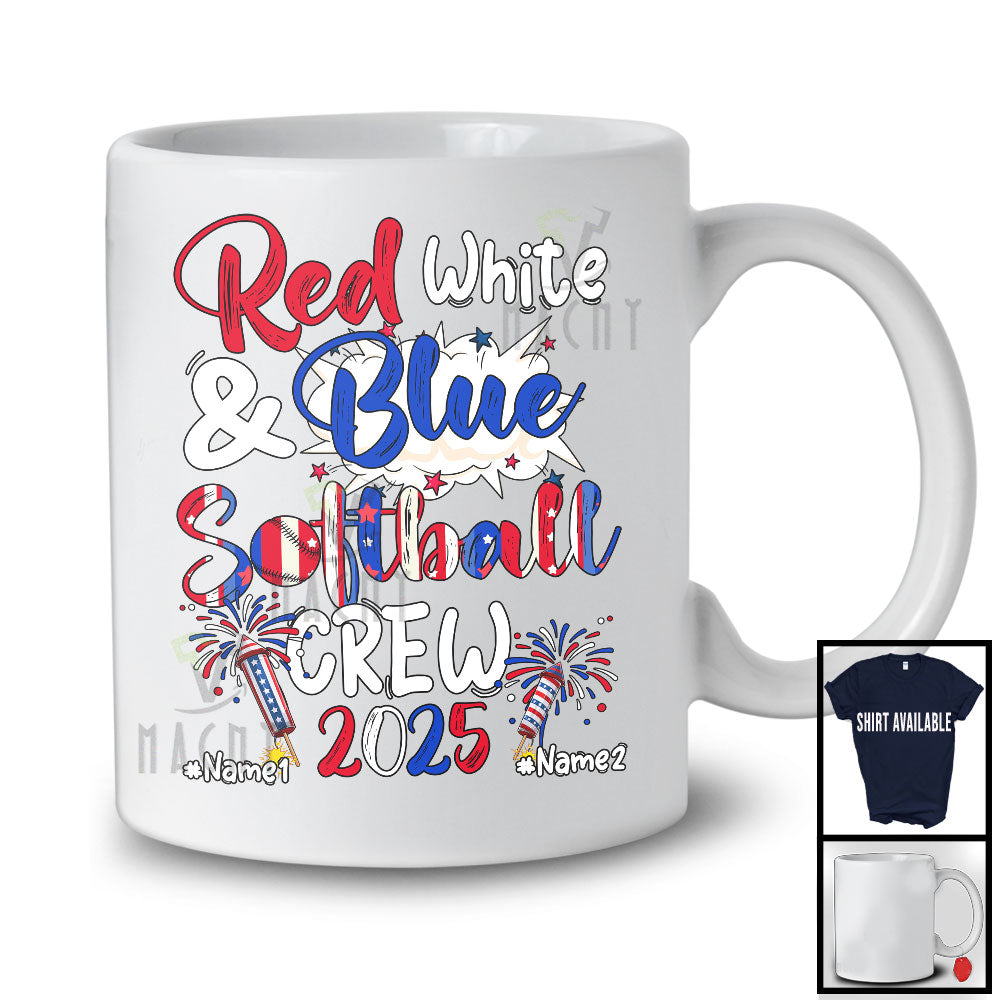 Personalized Custom Name Red White And Softball Crew 2025, Proud 4th of July Patriotic Group T-Shirt