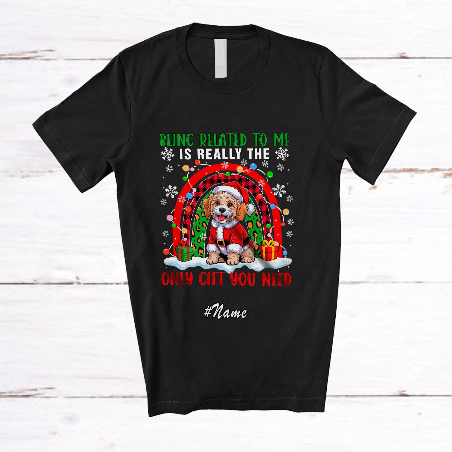 • Personalized Custom Name Related To Me Is Only Gift; Lovely Christmas Cockapoo Plaid Rainbow T-Shirt. This cotton t-shirt is a durable staple product with a classic fit. One of the most popular items, it has a relaxed style made for everyday and casual wear.
