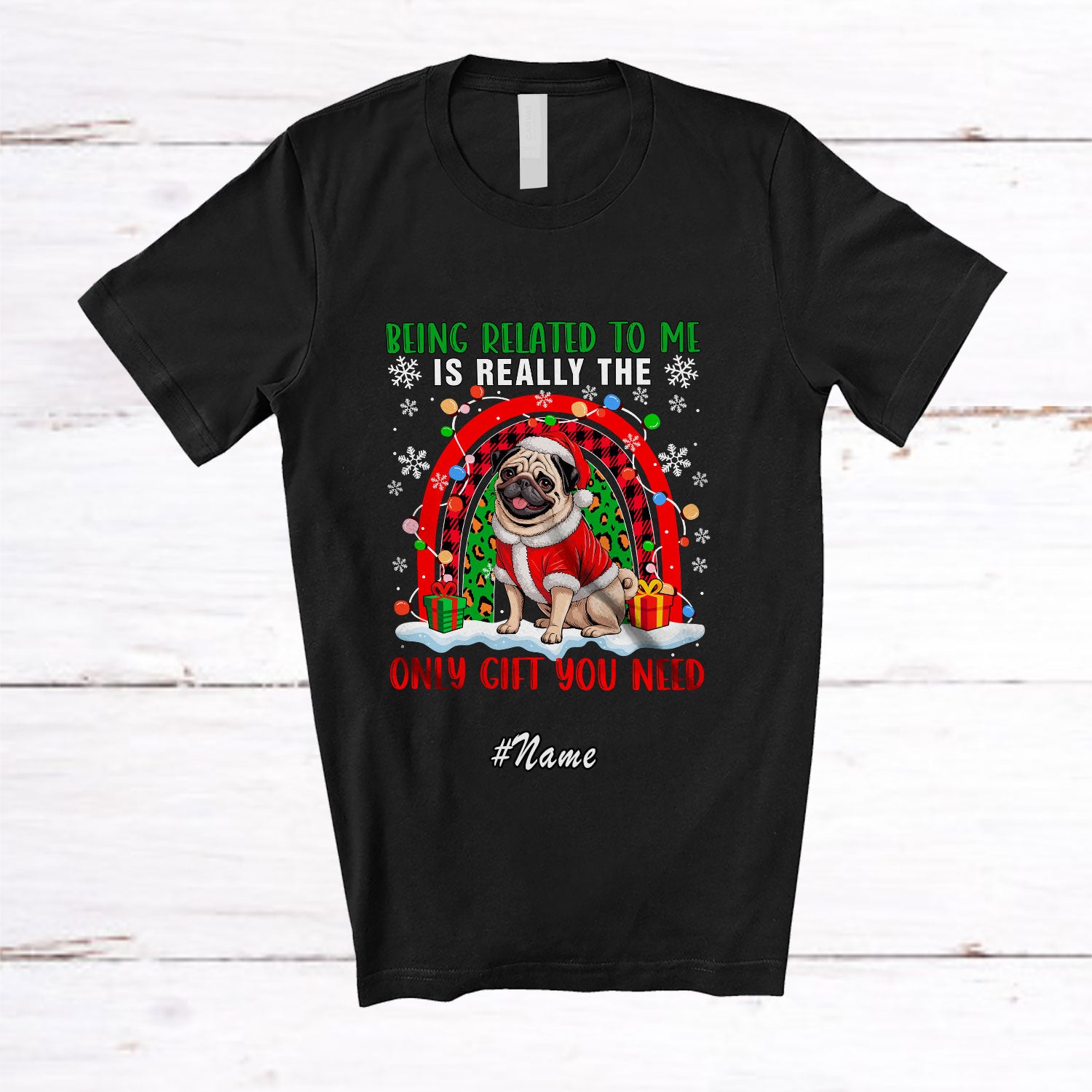 Personalized Custom Name Related To Me Is Really Only Gift; Lovely Christmas Pug Plaid Rainbow T-Shirt