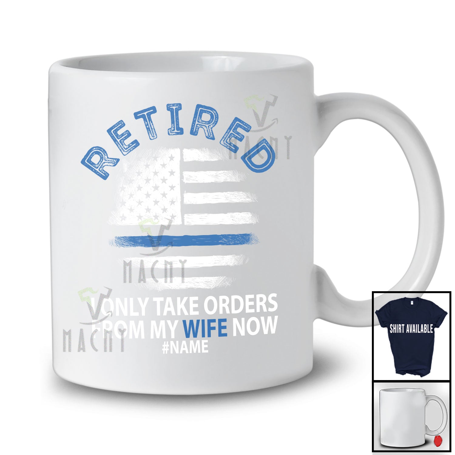 • Personalized Custom Name Retired Only Take Orders From Wife; Proud Retirement Police Officer T-Shirt. This cotton t-shirt is a durable staple product with a classic fit. One of the most popular items, it has a relaxed style made for everyday and casual wear.