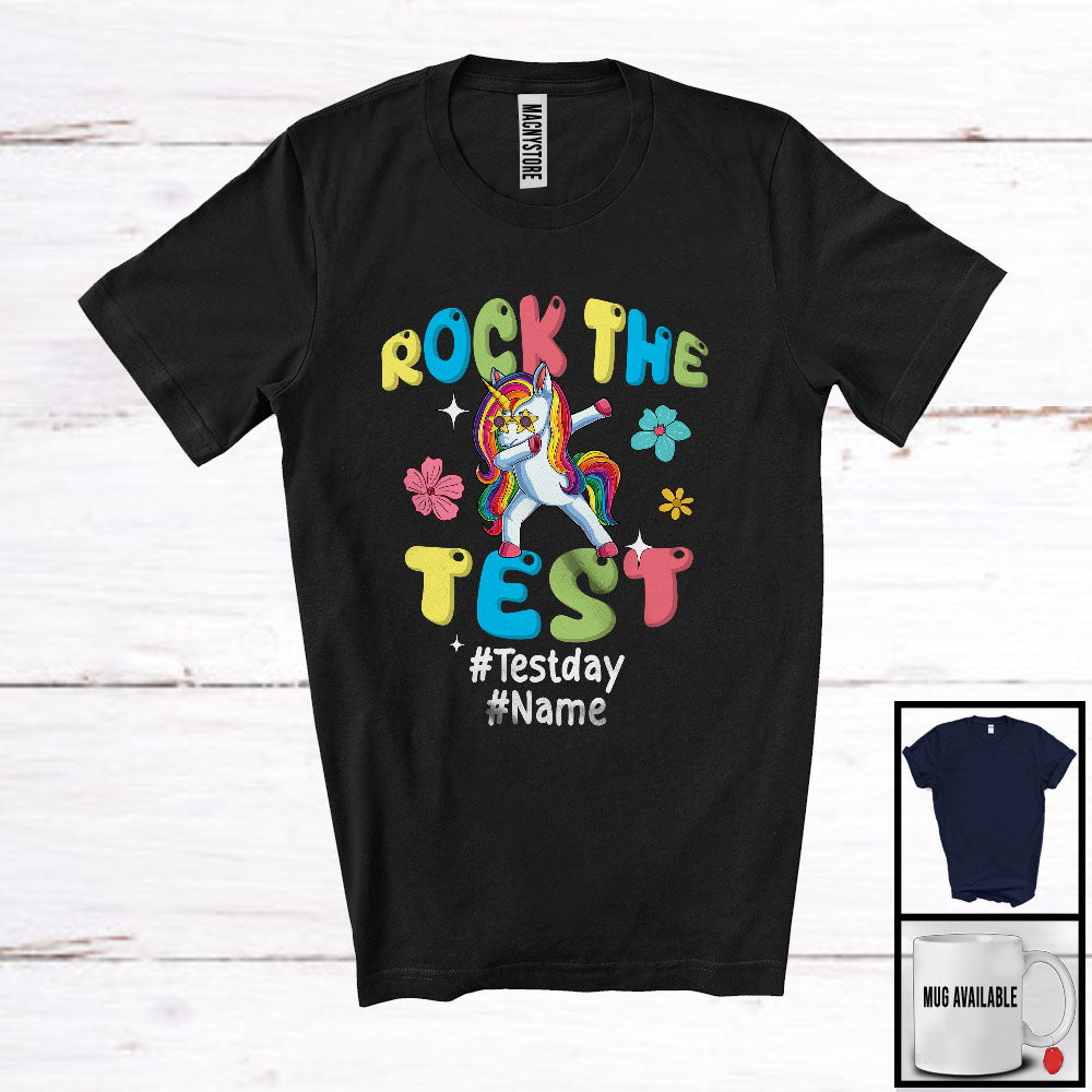 Personalized Custom Name Rock The Test, Humorous Testing Day Unicorn, Teacher Group T-Shirt