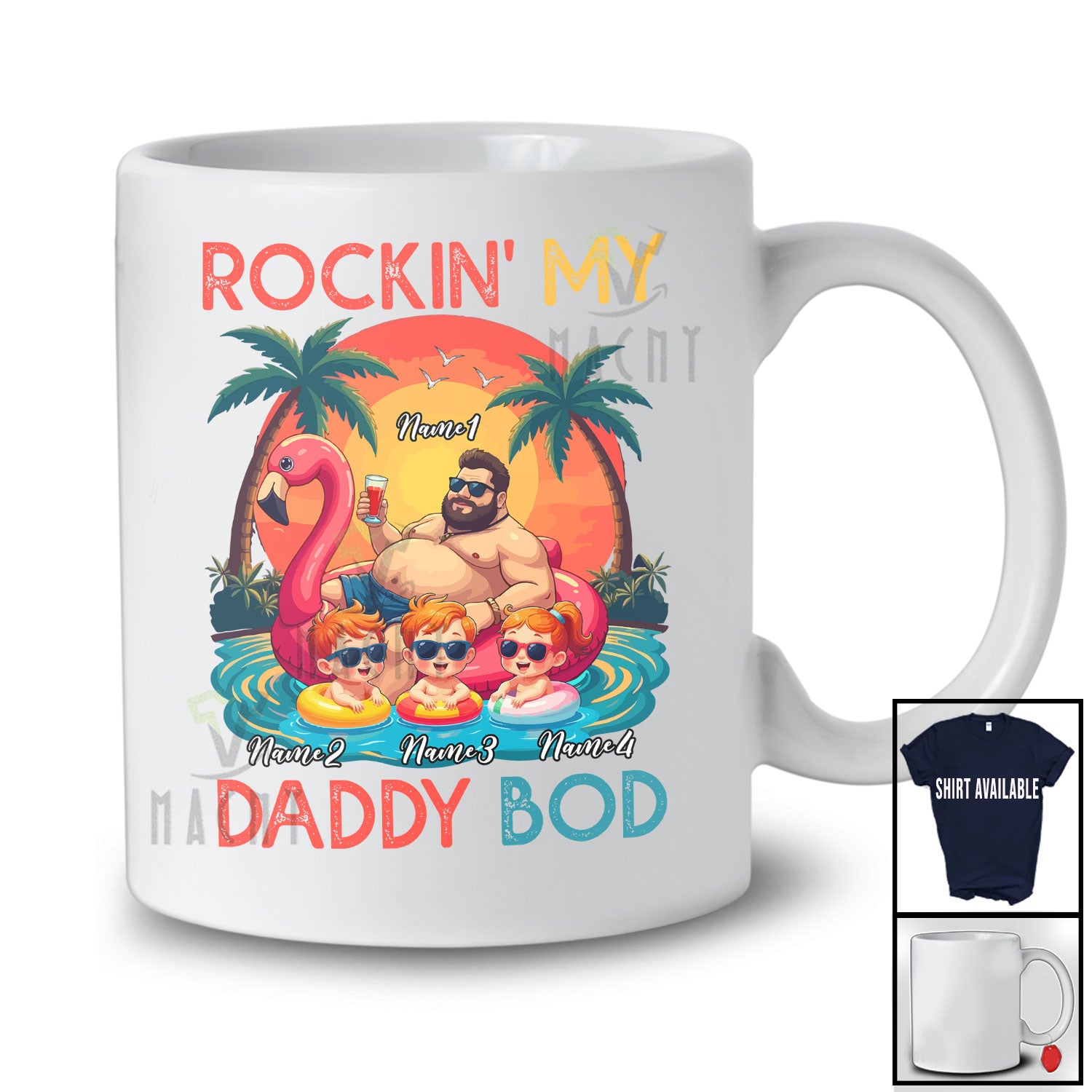 Personalized Custom Name Rockin' My Daddy Bod; Joyful Father's Day Sons Daughter Swimming T-Shirt. This cotton t-shirt is a durable staple product with a classic fit. One of the most popular items, it has a relaxed style made for everyday and casual wear.