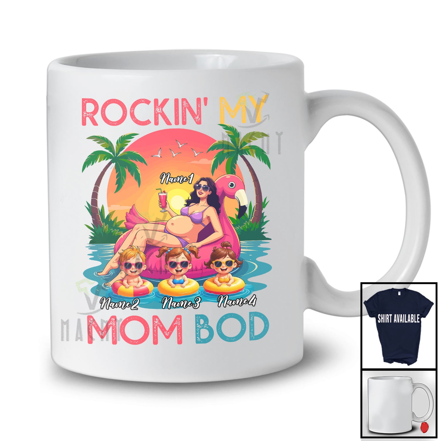 • Personalized Custom Name Rockin' My Mom Bod; Joyful Mother's Day Son Daughters Swimming T-Shirt. This cotton t-shirt is a durable staple product with a classic fit. One of the most popular items, it has a relaxed style made for everyday and casual wear.
