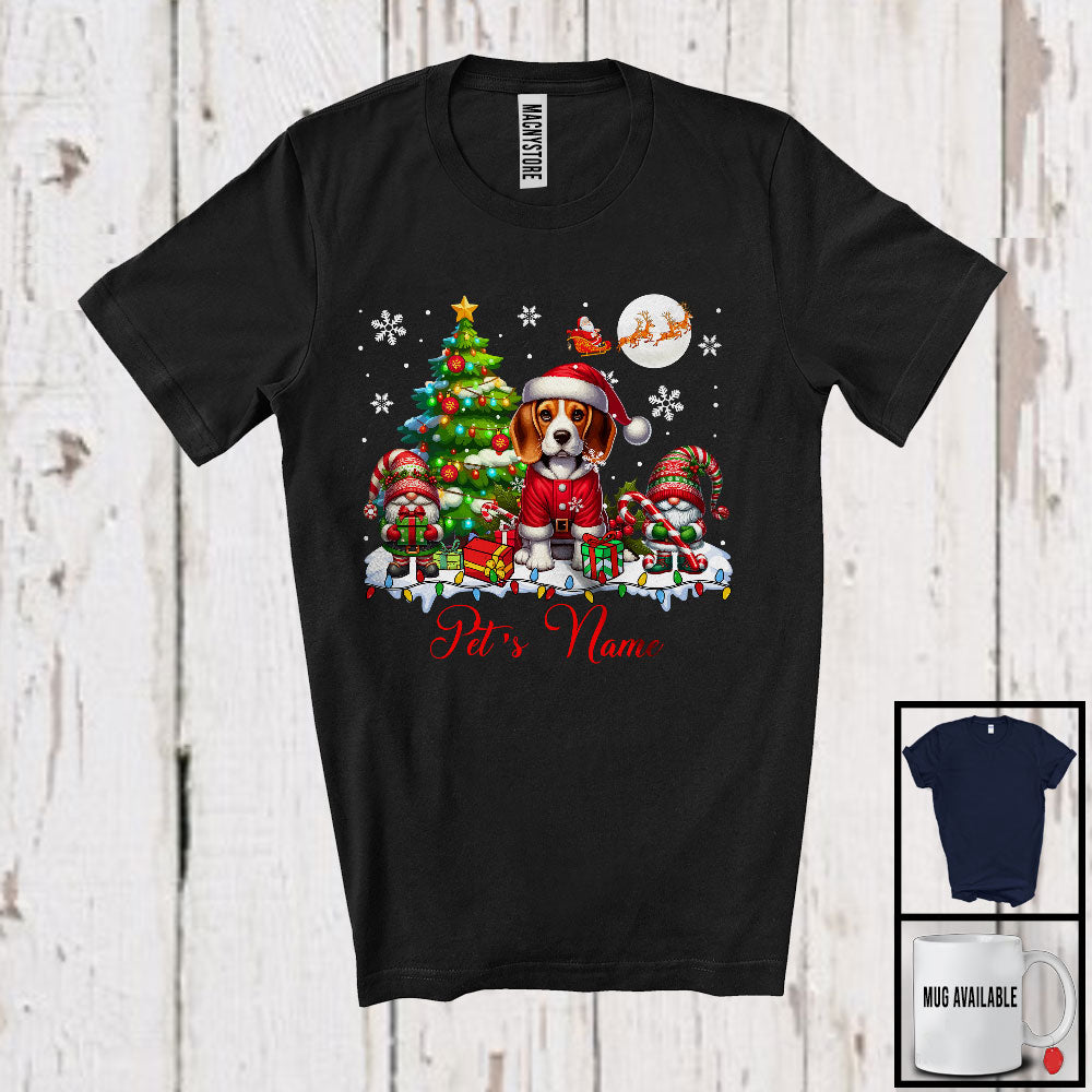 new MacnyStore - Personalized Custom Name Santa Beagle With Gnome, Lovely X-mas Tree, Snow Around T-Shirt – Macnystore