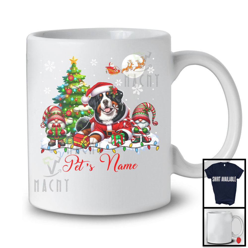 Personalized Custom Name Santa Bernese Mountain With Gnome, Lovely X-mas Tree, Snow Around T-Shirt