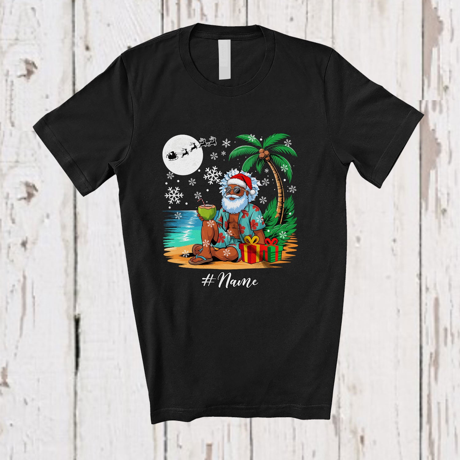 Personalized Custom Name Santa Drink Coconut; Amazing Christmas Tropical Hawaiian Afro Santa Beach T-Shirt